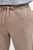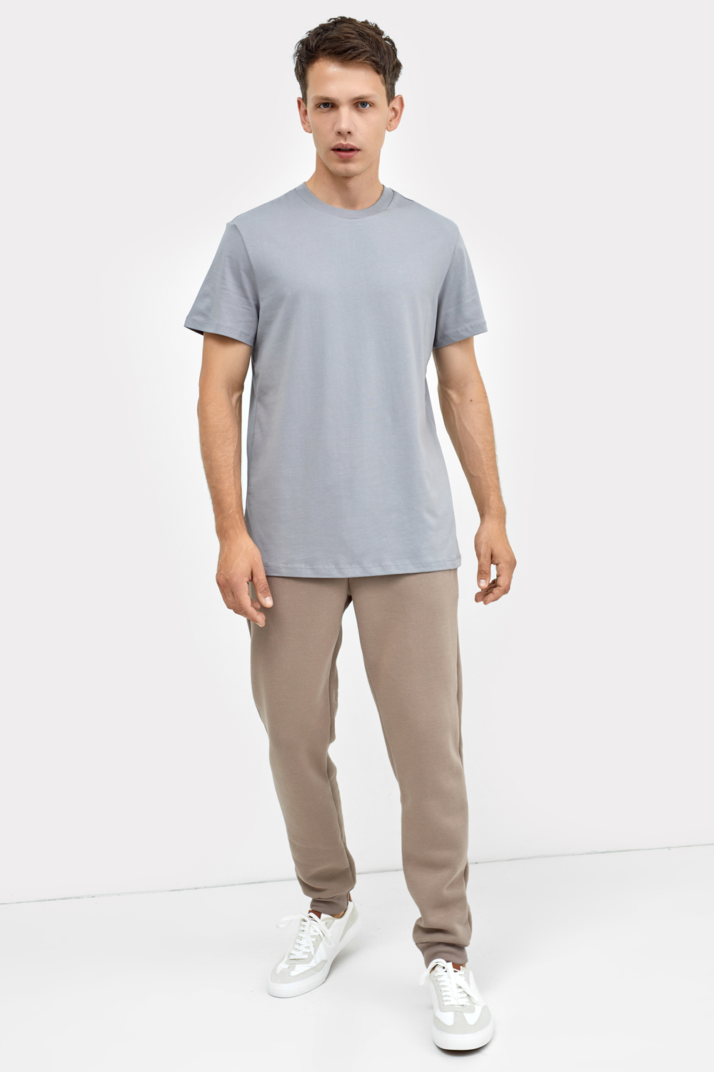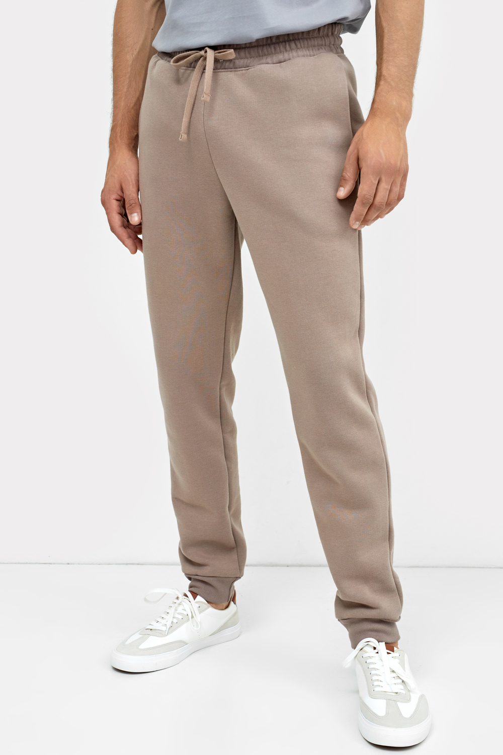 Стильные мужские брюки-джоггеры из трикотажного футера с теплым подчесом. Силуэт зауженный, штанины с манжетами. Есть удобные боковые карманы. В поясе – эластичная тесьма и шнурок-затяжка. Просто, комфортно, актуально!
