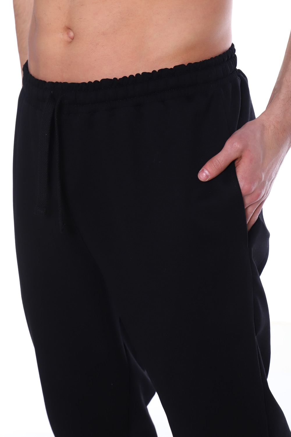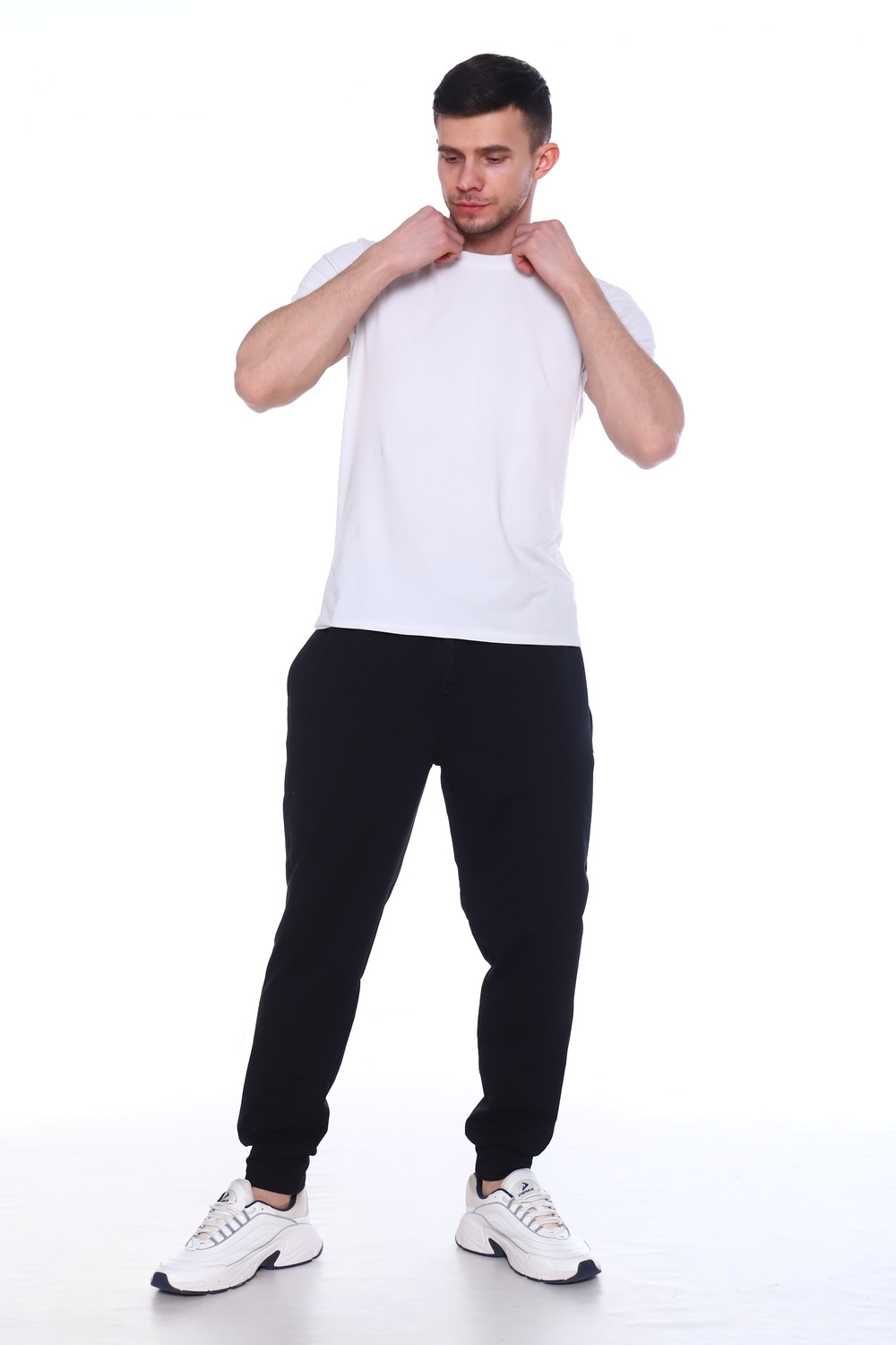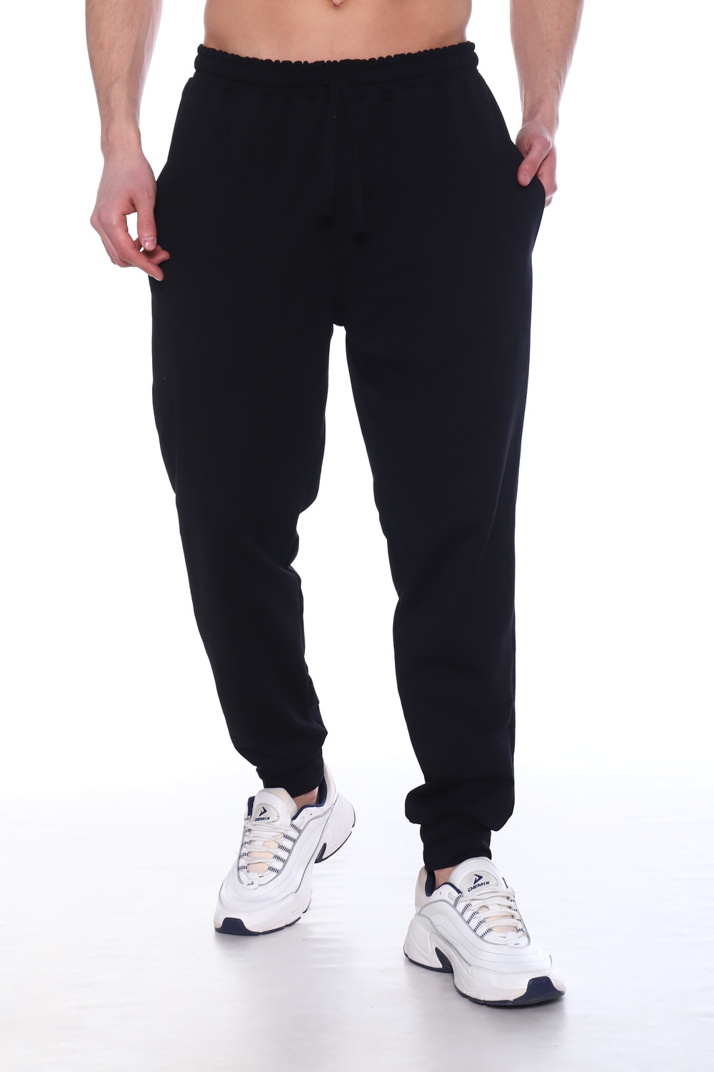 Брюки выполнены из высококачественного футера с лайкрой. Брюки на удобной резинке и регулируются шнурком. Низ брюк на манжетах.