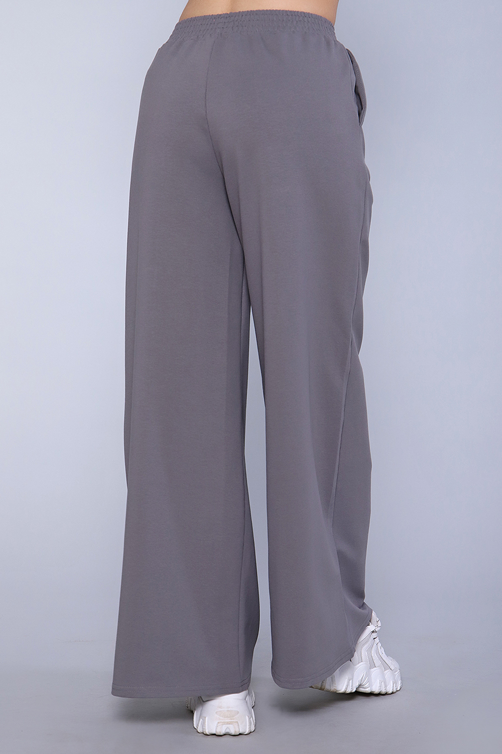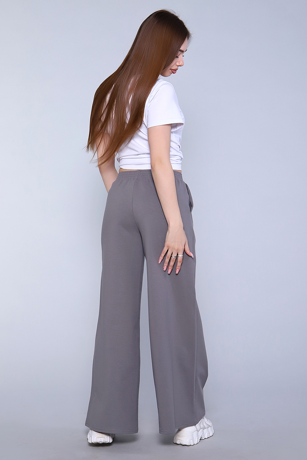 Широкие брюки женские палаццо со стрелками и с карманами. Пояс брюк обработан на поясной машине, что делает брюки практичными при носке – резинка не скручивается. В модели палаццо клеш от бедра, это визуально вытягивает фигуру, делает стройнее и элегантнее. Брюки свободного кроя скрываю все недостатки фигуры. Отлично сочетаются с блузками, рубашками, футболками, пиджаками, свитерами и водолазками. Брюки палаццо отлично подойдут как на работу в офис, так и создадут праздничный вечерний образ.
