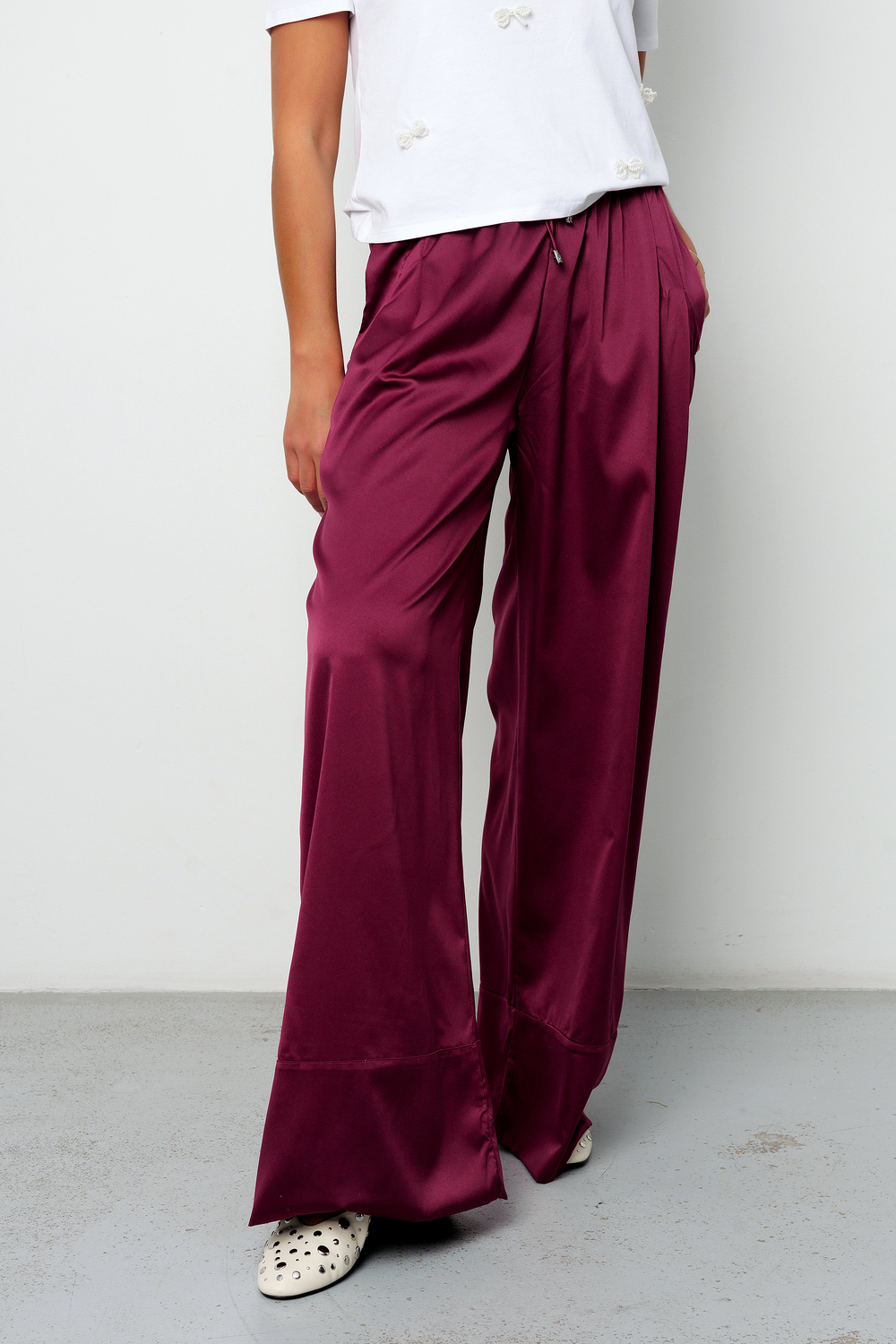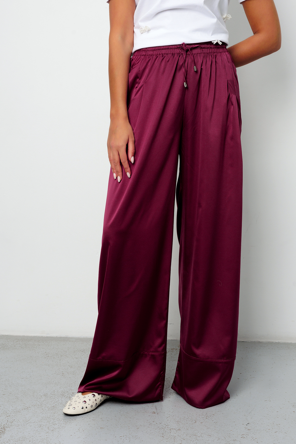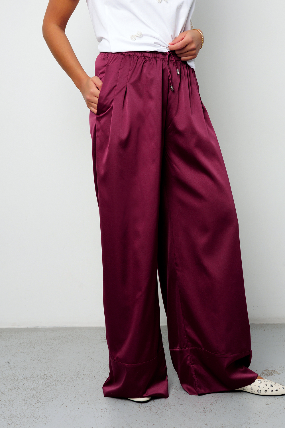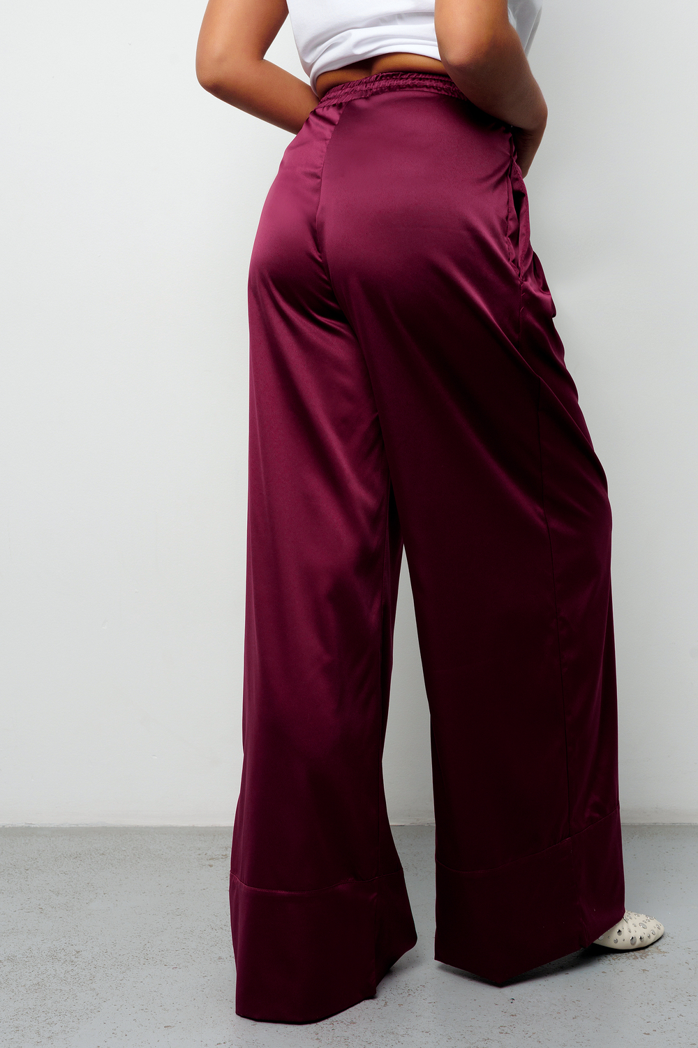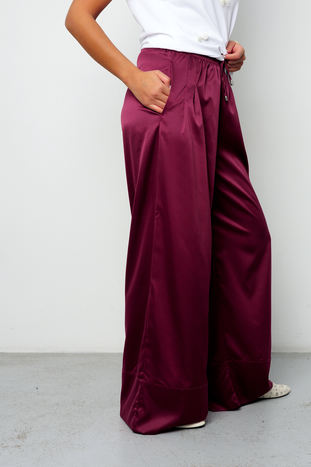 Брюки палаццо на резинке атласные 398BRD [бордовый]