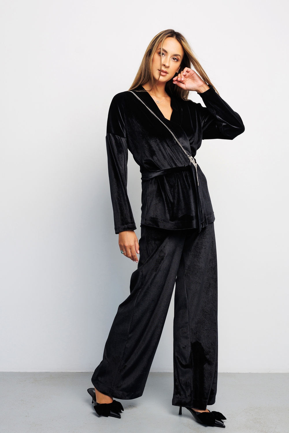 Бренд Raposa представляет Вашему вниманию классические велюровые женские брюки палаццо в стиле олд мани. Брюки чёрные женские станут идеальным дополнением к вашему базовому гардеробу и будут прекрасно сочетаться с различным верхом и аксессуарами. Нарядные, они превосходно подойдут для любого случая, будь то офис, вечернее или праздничное мероприятие. Идеальны как для высоких, так и невысоких женщин. Бархатные брюки, слаксы, имеют широкий размерный ряд до 56 размера для женщин плюс сайз. Особенности модели: высокая посадка, прямой клеш от бедра, красивая линия талии. Струящиеся брюки женские гэтсби стильно облегают женскую фигуру, имеют корректирующий эффект, стройнят и не сковывают движения, позволяя Вам чувствовать себя комфортно на протяжении всего дня. Благодаря эластичной эргономичной резинке на талии широкие штаны обеспечивают максимальное удобство и идеальную посадку на любой рост. Брюки палаццо женские выполнены из высококачественного материала – плюш, мягкого и приятного на ощупь, который, несомненно, подарит дополнительный лоск и привлечет восхищенные взгляды окружающих. Эти роскошные, универсальные и комфортные брюки подойдут на любой сезон и будут уместны по любому поводу Новый год, День рождения, 8 марта для женщин и девушек подростков, предлагая великолепную посадку благодаря удобному покрою. Ткань: велюр. Состав: 100% полиэстер.