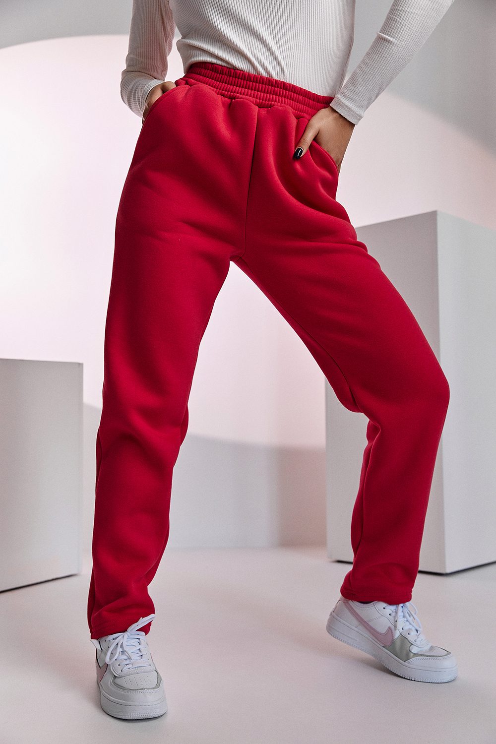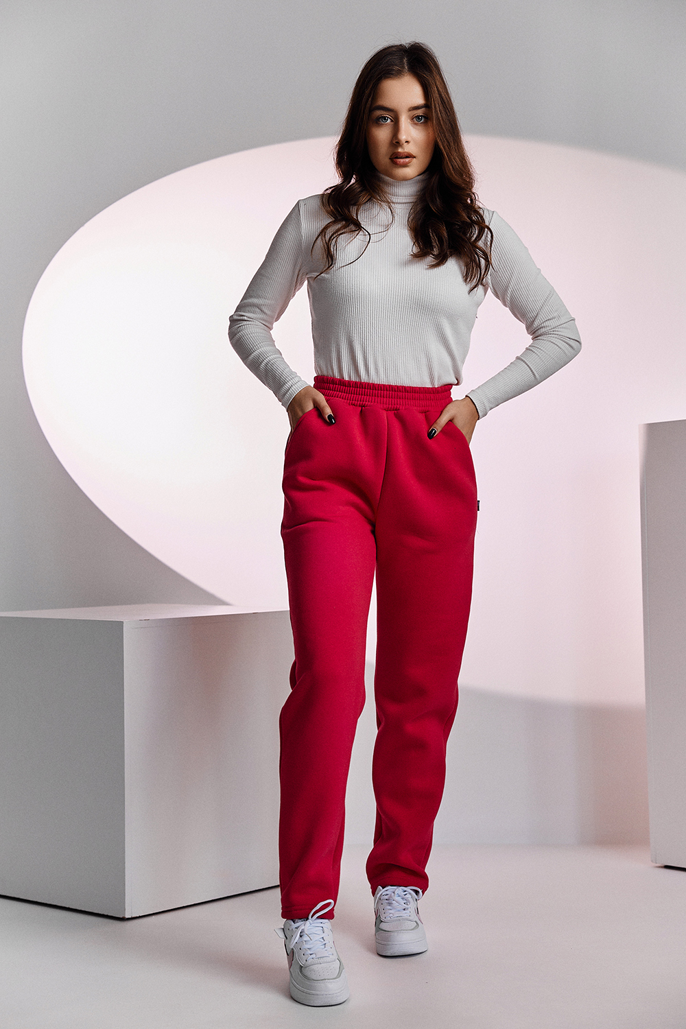 Женские брюки выполнены из футера с начесом. Теплые, прямые брюки с высокой талией комфортны и приятны к телу. Пояс на широкой резинке. По бокам брюк удобные глубокие карманы. Утепленные брюки станут отличным дополнением вашего гардероба.