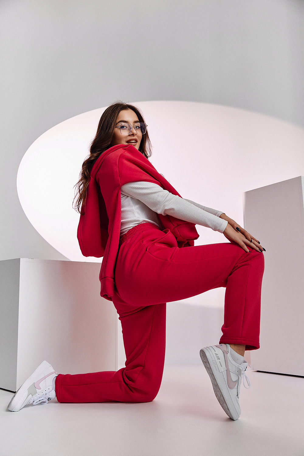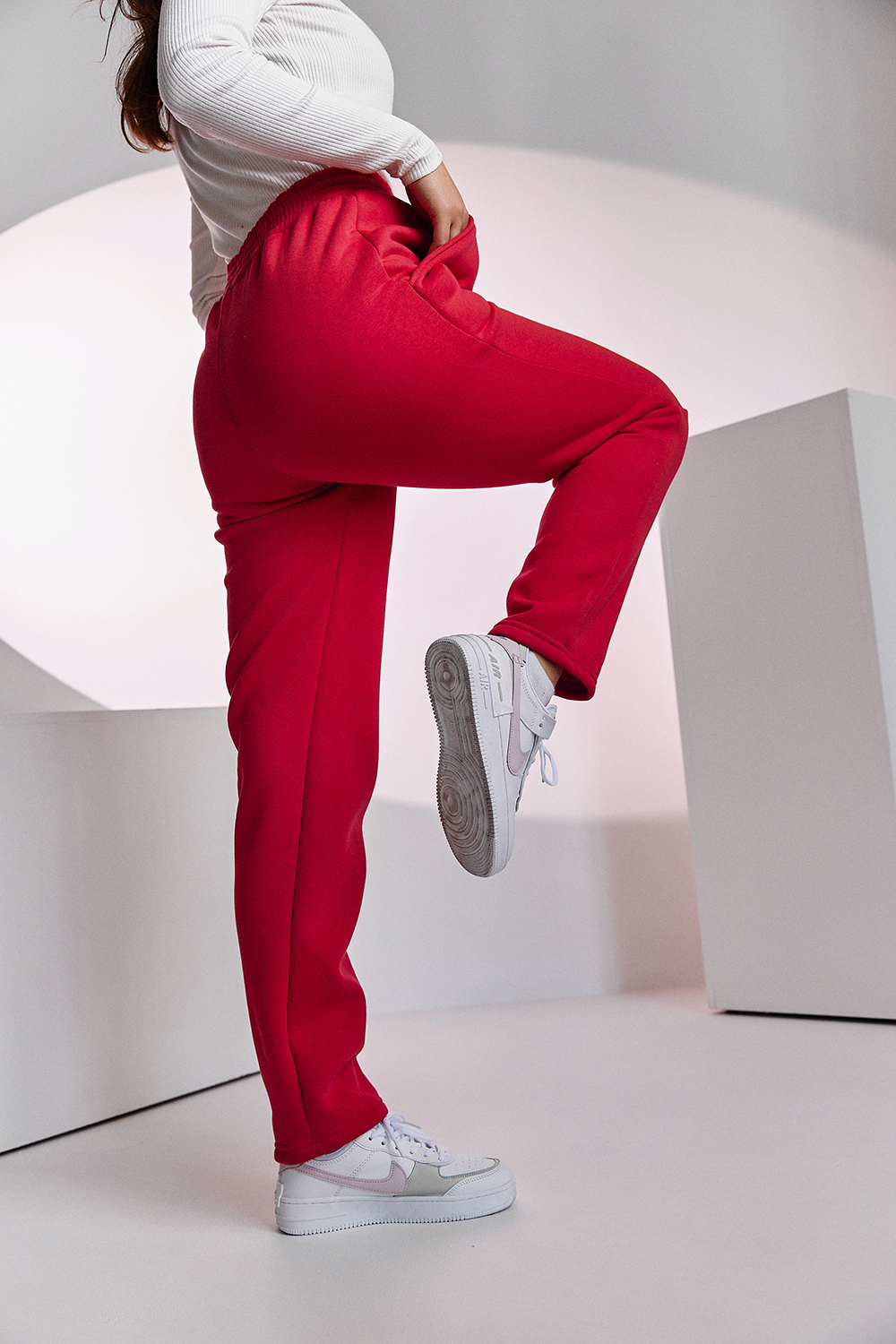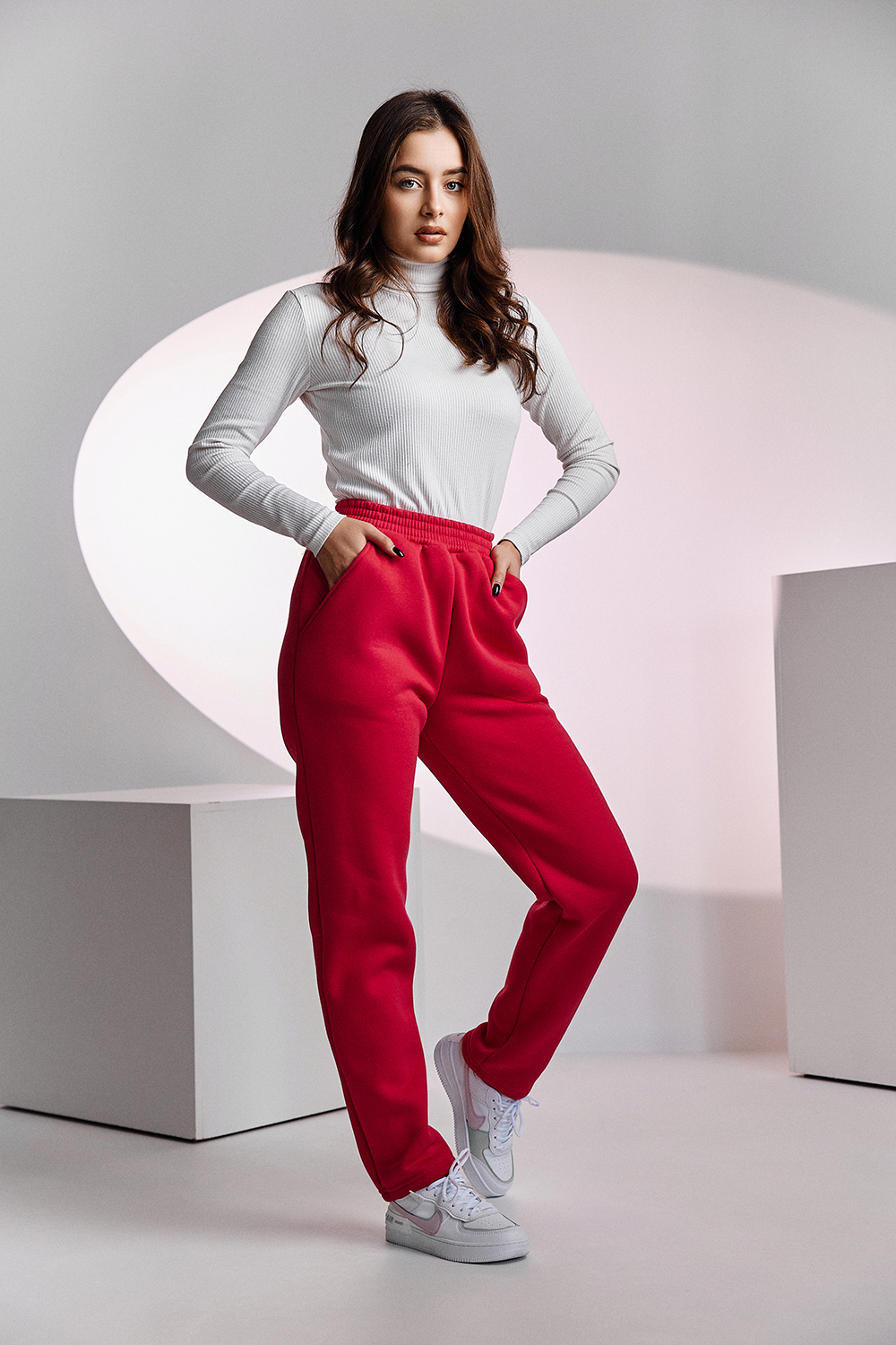 Женские брюки выполнены из футера с начесом. Теплые, прямые брюки с высокой талией комфортны и приятны к телу. Пояс на широкой резинке. По бокам брюк удобные глубокие карманы. Утепленные брюки станут отличным дополнением вашего гардероба.
