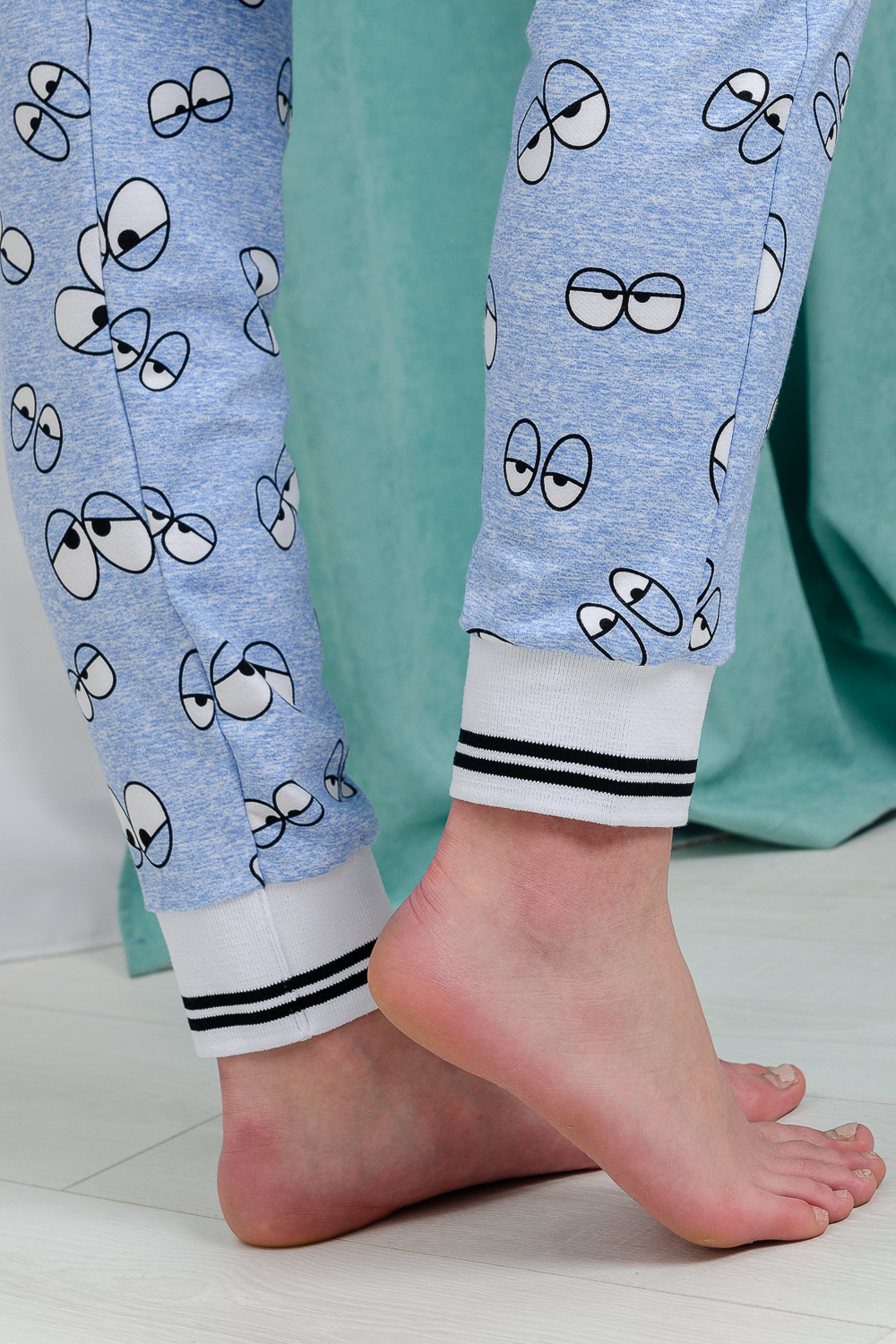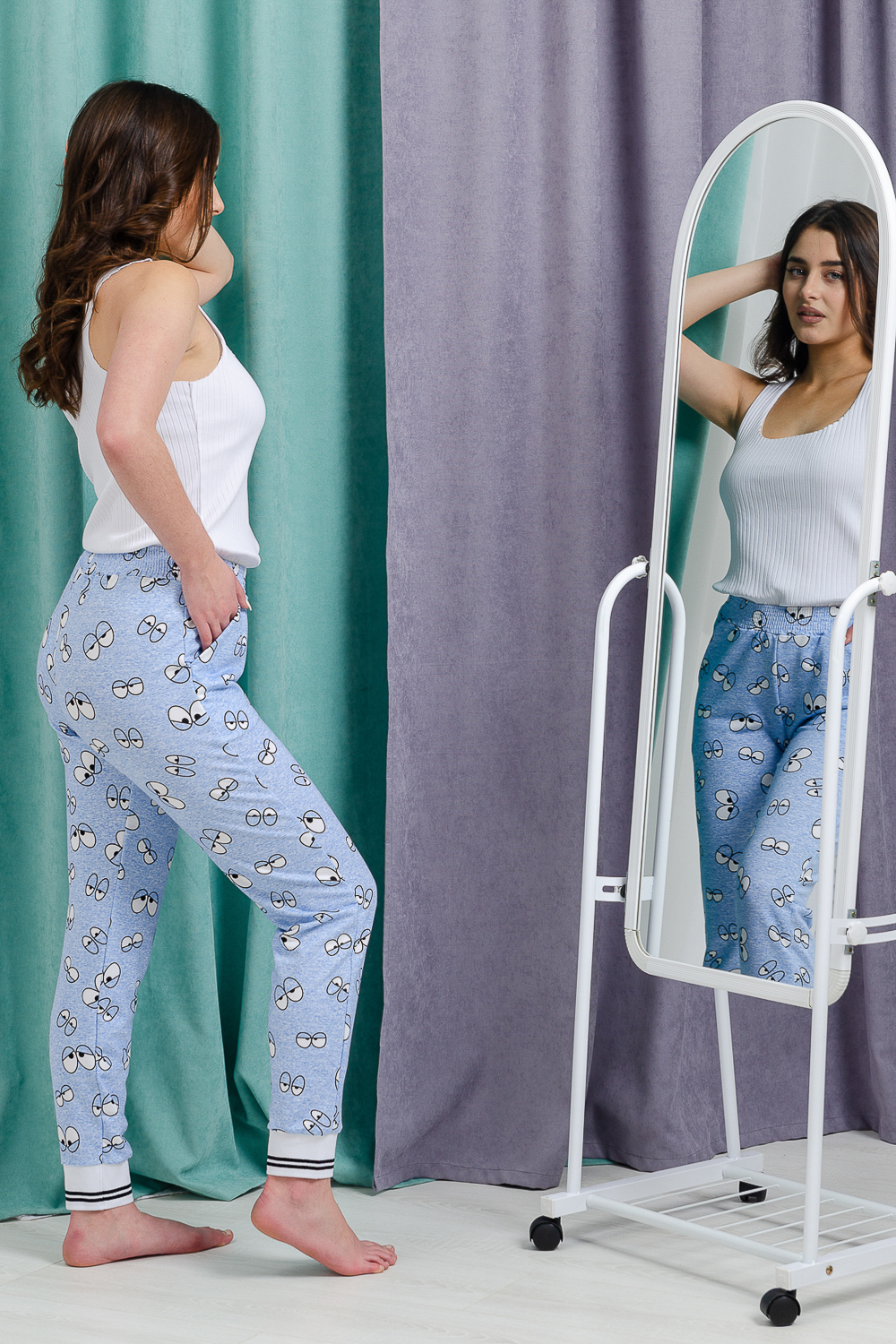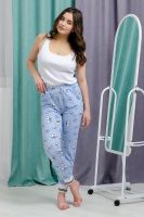 Брюки на поясе, с боковыми карманами, с эластичным манжетом внизу.