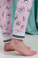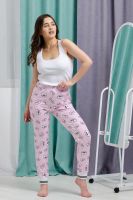 Брюки на поясе, с боковыми карманами, с эластичным манжетом внизу.