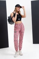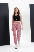 Брюки на поясе, с боковыми карманами, с резинкой по низу брюк.