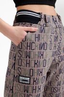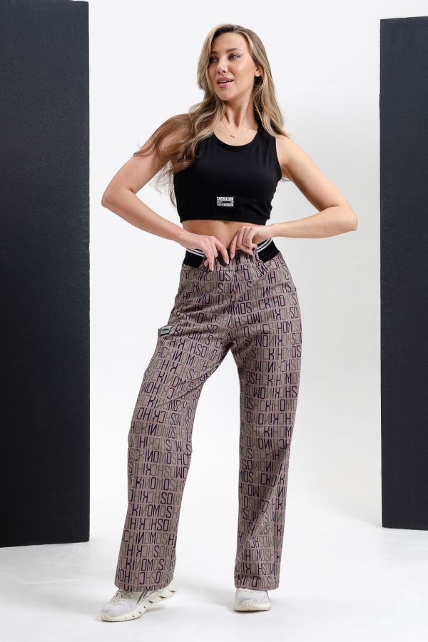 Брюки прямые, с боковыми карманами, на поясе. Боковые вставки пояса выполнены из кашкорсе с лампасами.