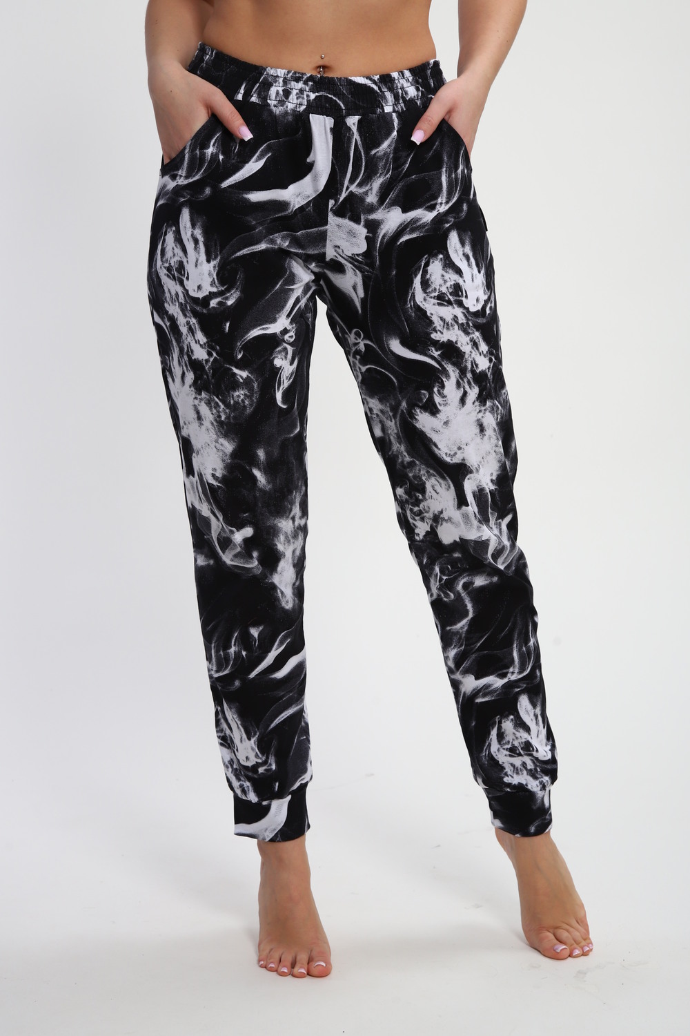Женские брюки для дома созданы для максимального комфорта и уюта в повседневной жизни. Модель выполнена из мягкого текстиля на основе хлопка, что делает изделие особенно легким и приятным к телу. Трикотажные штаны с резинкой на поясе обеспечивают отличную посадку по фигуре, не стесняют движений и подходят для разных размеров, в том числе больших. Это отличный выбор одежды для сна или отдыха после насыщенного дня. Джоггеры с боковыми карманами позволяют удобно разместить необходимые мелочи, сохраняя практичность и стиль одновременно. Классический крой с прямыми штанинами подходит как для беременных женщин, так и для тех, кто ценит свободу движений и комфорт каждый день. Приятный принтом добавляет индивидуальности вашему образу — вы сможете выбрать вариант, который подчеркнет ваш стиль. Трикотажная ткань отличается высоким качеством пошива и долговечностью. Материал дышащий, не вызывает раздражения даже при длительном ношении. Брюки идеально подойдут как повседневные: их можно надевать дома, брать с собой в поездки или использовать как пижамные штаны для спокойного сна. Средняя посадка подходит большинству типов фигур, а эластичная резинка на талии гарантирует удобство независимо от вашего размера. Такие женские брюки станут незаменимой частью гардероба в любое время года благодаря универсальному дизайну и функциональности. Для любительниц домашнего уюта эти трикотажные джоггеры станут настоящей находкой: они отлично сочетаются с футболками, свитшотами или майками. Карманы сбоку позволят держать под рукой все необходимое — например телефон или ключи — во время домашних дел. Мягкий хлопковый материал способствует хорошей терморегуляции: вам будет комфортно как летом, так и зимой. Пижамные штаны подходят не только для отдыха дома или сна — они также могут стать частью стильного повседневного образа благодаря универсальному дизайну и актуальным деталям оформления.