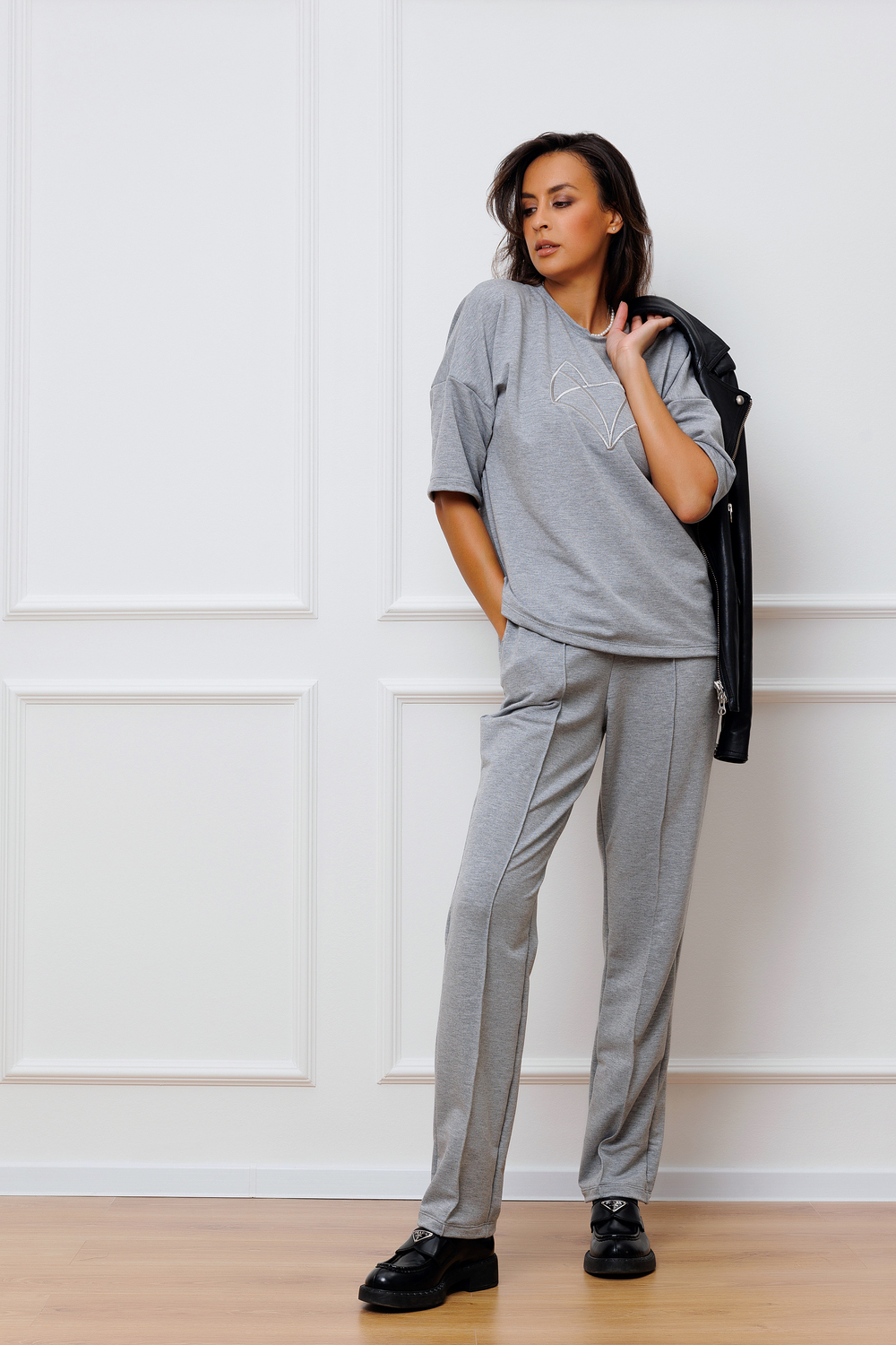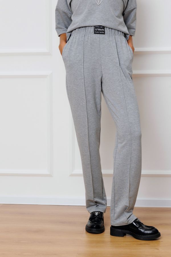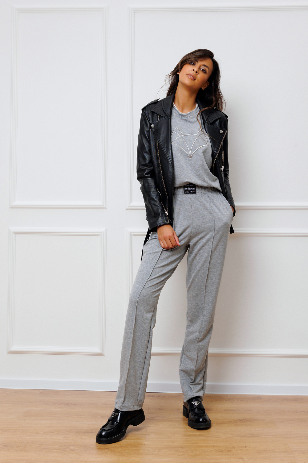 Повседневные брюки Raposa свободного кроя, выполненные в нейтральном оттенке. Модель лаконичного дизайна, что подчеркивает её универсальность. Изделие декорировано "стрелками", а также дополнено боковыми карманами. Ткань - футер. Состав - 60% хлопок, 40% полиэстер. Длина изделия 104 см. Рост модели на фото 173 см. Рекомендуем сочетание с футболкой арт.342