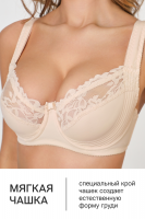 Бюстгальтер создан для поддержки груди больших размеров. Модель оснащена косточками, которые фиксируют форму, и регулируемой спинкой для точной настройки по фигуре. Чаши из дышащего материала с декоративными элементами из кружева обеспечивают комфорт в течение дня. Широкие мягкие бретели и усиленные боковые швы распределяют нагрузку, снижая давление на плечи и спину. Без эффекта пуш-ап — акцент на естественный силуэт. Благодаря косточкам, обеспечивает удобную посадку без лишнего давления, а отсутствие пушапа делает его максимально естественным и комфортным для повседневного ношения. Доступен в широкой размерной сетке. Сочетание функциональности и лаконичного дизайна с кружевными элементами от бренда OIRO.