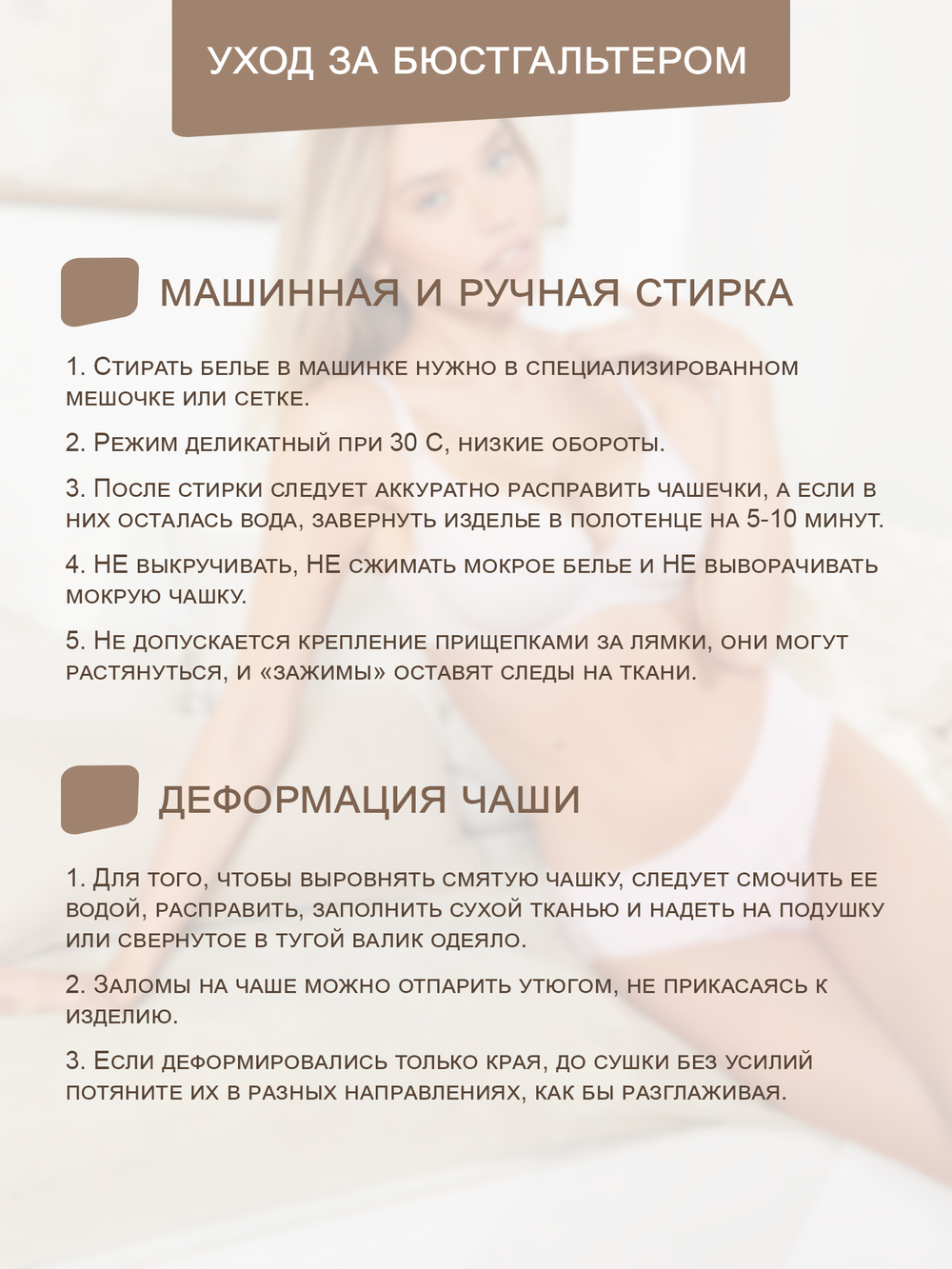 Гладкий бюстгальтер STYLE GUIDE - это отличный вариант базового бюстгальтера на каждый день. Будьте внимательны при выборе размера. Чаша А - без пушапа, без съемных бретелей. Чаша В, С - с пушапом и со съемными бретелями. Чаша D - без пушапа, со съемными бретелями. Чаша Е - без пушапа, со съемными бретелями. Модель МАЛОМЕРИТ в чаше на размер. Бюстгальтер отлично подходит на каждый день, в офис, на прогулку, на свадьбу, в школу. Если вам пришел бюстгальтер с мятой чашей - это легко исправить утюгом или отпаривателем. Рекомендуем деликатную стирку при 30С.