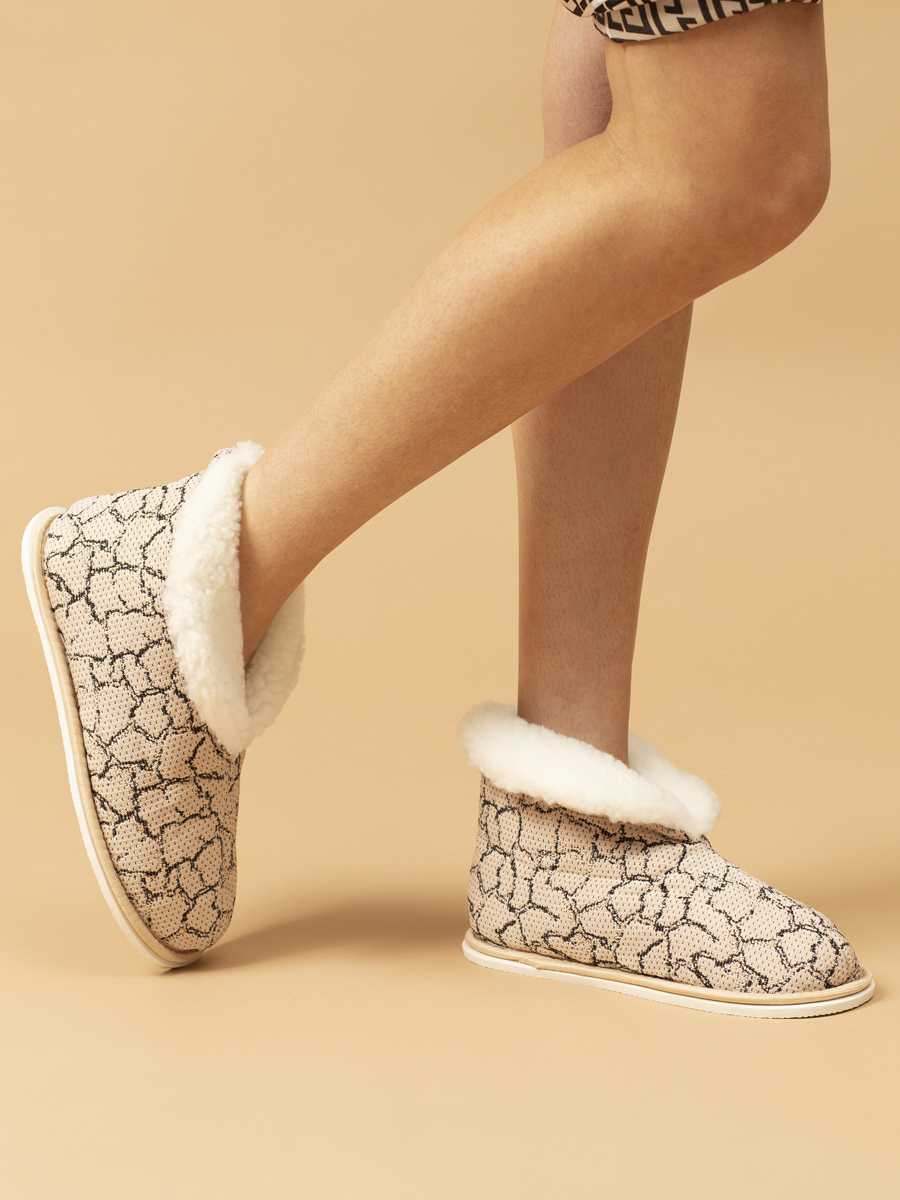 Обновите свою домашнюю коллекцию обуви с нашими стильными женскими чунями от ИвШуз! Изготовленные из износостойкой ткани, эти тапочки обеспечат вам комфорт и элегантный вид каждый день. Ткань прекрасно держит форму и не собирает грязь, что делает её идеальным выбором для домашнего использования. Внутри тапочек вас ждет мягкий и пушистый белый мех, который приятно согревает ноги и создает ощущение уюта. Подошва из ЭВА отличается прочностью и прошита для дополнительной долговечности, что гарантирует комфорт при каждом шаге. Эти высокие тапочки плотно облегают ногу, что делает их отличным выбором для холодного времени года — они сохранят тепло даже в самые морозные дни. Чуня станут ярким акцентом в вашем домашнем гардеробе и прекрасно сочетаются с халатами и пижамами, добавляя уюта вашему образу. ИвШуз предлагает широкий ассортимент домашней обуви для всей семьи с разнообразными моделями и расцветками. Наша продукция производится в России более 15 лет, и мы гарантируем качество и стиль каждой пары. Выберите домашнюю обувь ИвШуз, чтобы наслаждаться комфортом и стилем в своем доме!
