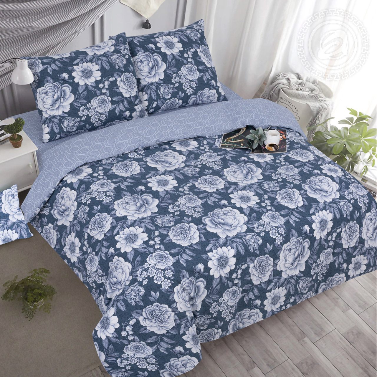 Вы любите цветы? Растительные принты считаются одними из самых популярных. Они всегда добавляют в интерьер элегантности, свежести, чувственности. Постельное белье с цветами «Дарьяна» – чудесный образец нежности и красоты. Комплект из поплина украшен цветочным принтом в спокойной палитре оттенков. Это интересный и оригинальный акцент в пространстве спальни!