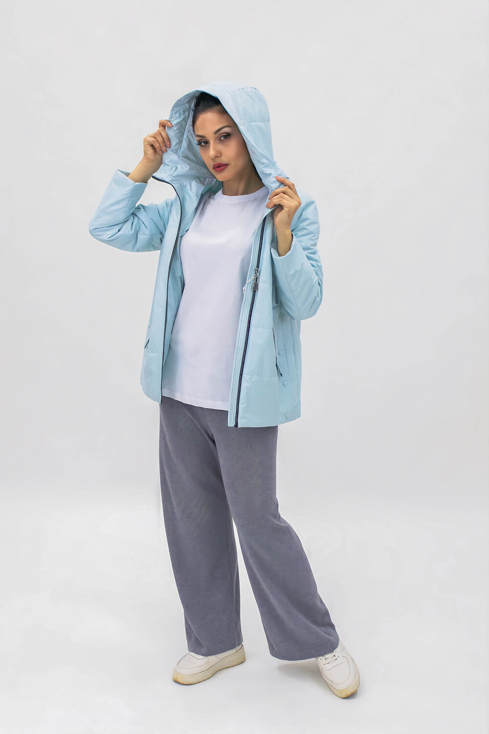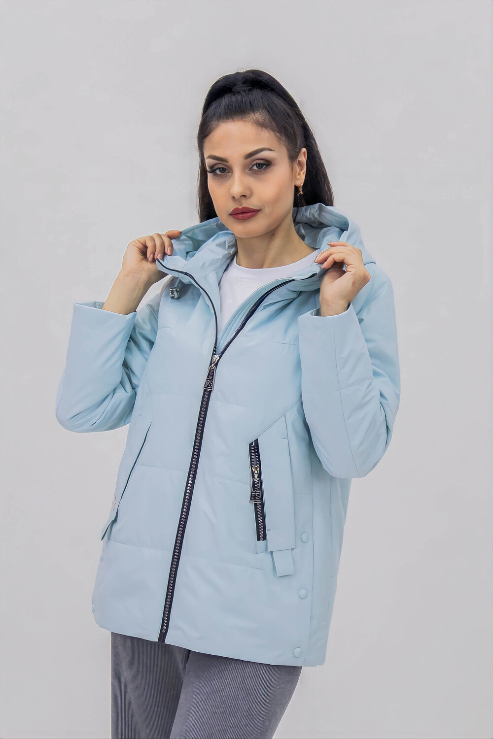 Стильная и легкая демисезонная куртка на теплую весну или осень с капюшоном, средней длины, из приятной на ощупь специальной курточной ткани, к которой не прилипает грязь или шерсть домашних любимцев. Модель имеет прямой свободный крой, не длинный и в ней Вам будет удобно перемещаться по городу, в транспорте или на автомобиле. Куртка качественная, прошита стежком (не ультрастеп), что означает, что утеплитель однородно фиксируется и не имеет возможности скапливаться в отдельных участках, делая изделие более долговечным и практичным. Куртка с высоким воротником стойкой переходит в глубокий капюшон, который дополнен аккуратными фиксаторами позволяющими плотно застегнуть и легко его регулировать, обеспечивая надежную защиту от ветра и холода - необходимая вещь для прохладной погоды в условиях переменчивого российского климата. Модель украшена стильными и актуальными элементами, расположенными так, что бы визуально скорректировать фигуру, делая образ более привлекательным. Благодаря широкому размерному ряду, она идеально подходит для любой фигуры, обеспечивая максимальный комфорт и удобство. Модель представлена в актуальных цветовых решениях, что позволяет подобрать ее под любой гардероб. Куртка незаменимая классическая вещь в городской среде, которая помогает создать современные образы в стилистике тревел, стрит стайл, спорт и кэжуал. Подходит для девушек и женщин любого возраста и любого роста: высокого, среднего или невысокого. Ее выбирают для повседневной носки, чтобы добраться на работу в офис, на учебу в школу, на занятия в колледж или для прогулок с подружками. Рост модели на фото 175 см, размер 46-48 (на ней куртка 46-48 размера).