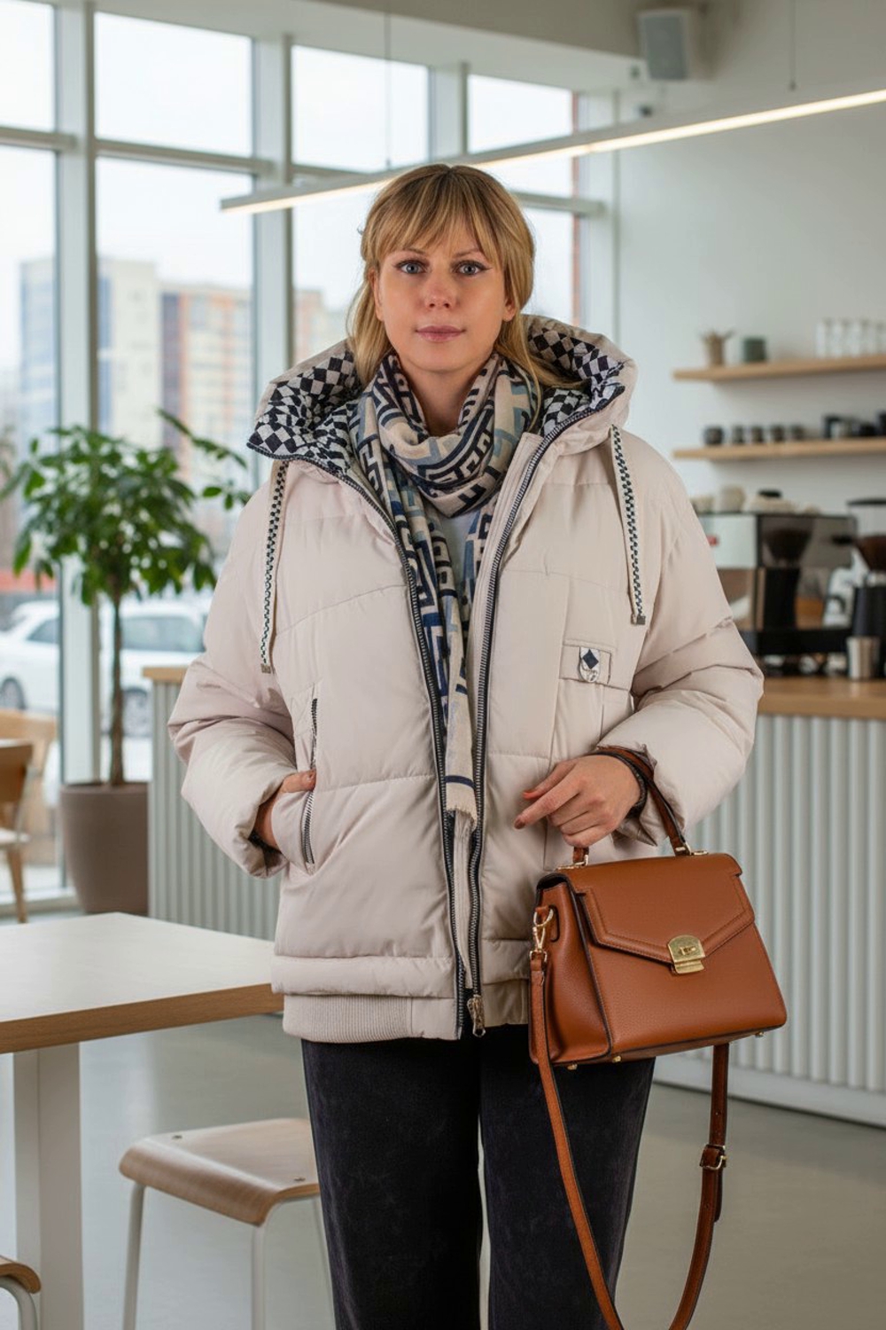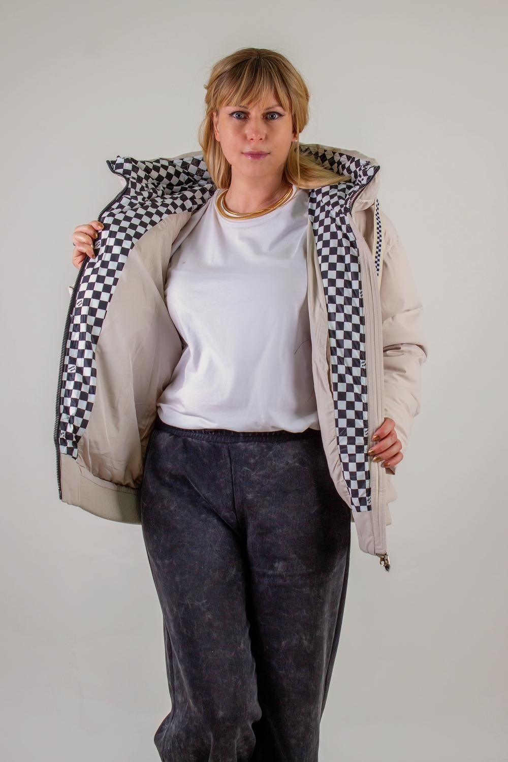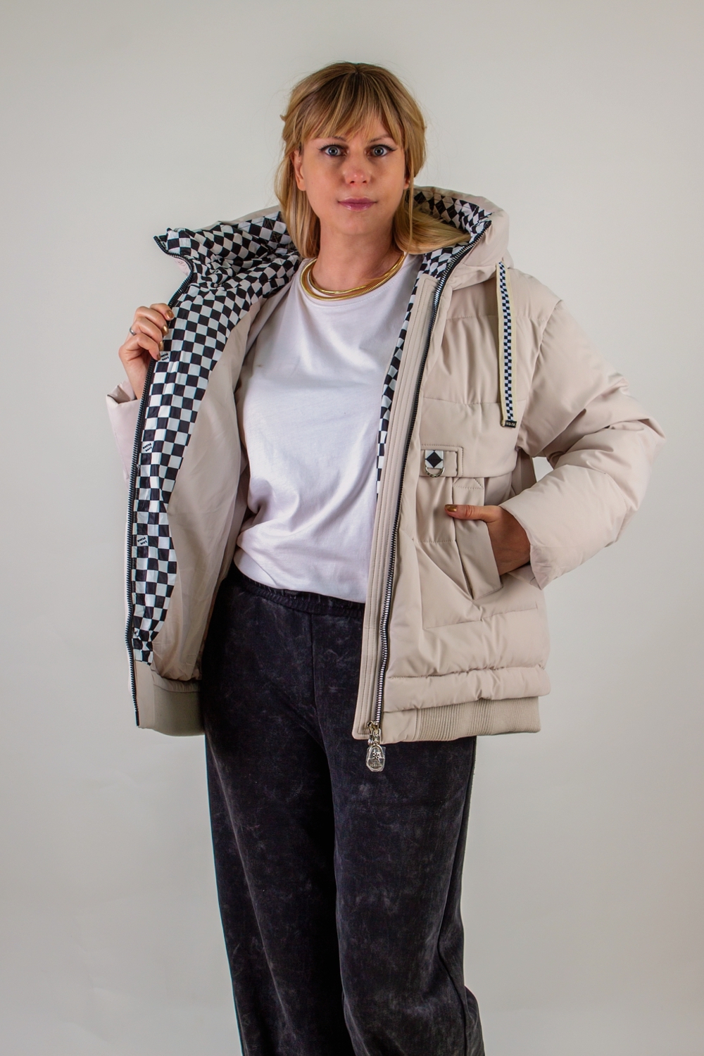 Демисезонная куртка арт. Н3039 “Евро-зима” – это идеальное сочетание современного стиля и практичной функциональности. Укороченный силуэт придаёт образу динамичность и легкость, а продуманная конструкция обеспечивает комфортный температурный режим в межсезонье и mild-зиму. Основные характеристики: • Материал: высококачественный синтетический аутдор-ткань с водоотталкивающей пропиткой. Изнутри – лёгкая термоизоляция, сохраняющая тепло без излишней объёмности. • Фасон: укороченная модель, что визуально удлиняет силуэт и гармонирует с любыми брюками или юбкой. • Молния: двусторонняя, позволяет регулировать посадку и комфорт при движении. Удобна при посадке в автомобиль. • Манжеты и низ: эластичный трикотажный манжет на рукавах и по низу изделия надёжно фиксирует тепло и препятствует проникновению ветра. • Капюшон: объёмный, с регулировкой по глубине и окантовкой контрастным шнуром. Внутренняя отделка капюшона – оригинальный чёрно-белый шахматный принт, придающий модели дерзкий, игривый характер. • Карманы: практичные боковые карманы на надёжных металлических кнопках для хранения мелочей и защиты от ветра. Внутренний нагрудный карман на молнии – для ценных документов и гаджетов. • Внутренняя планка: защищает от продувания по линии молнии, придаёт изделию аккуратный вид и дополнительную защиту от холода. Модель прекрасно сочетается с джинсами, спортивными брюками или юбкой-карандаш, образуя универсальный городской look. Куртка арт. Н3039 “Евро-зима” подходит для прогулок по парку, активного отдыха на природе, поездок в город и нескучных выходных. Она подчёркивает вашу индивидуальность и готова стать вашим надёжным спутником в любую демисезонную непогоду.