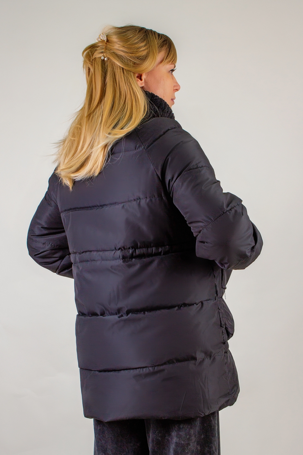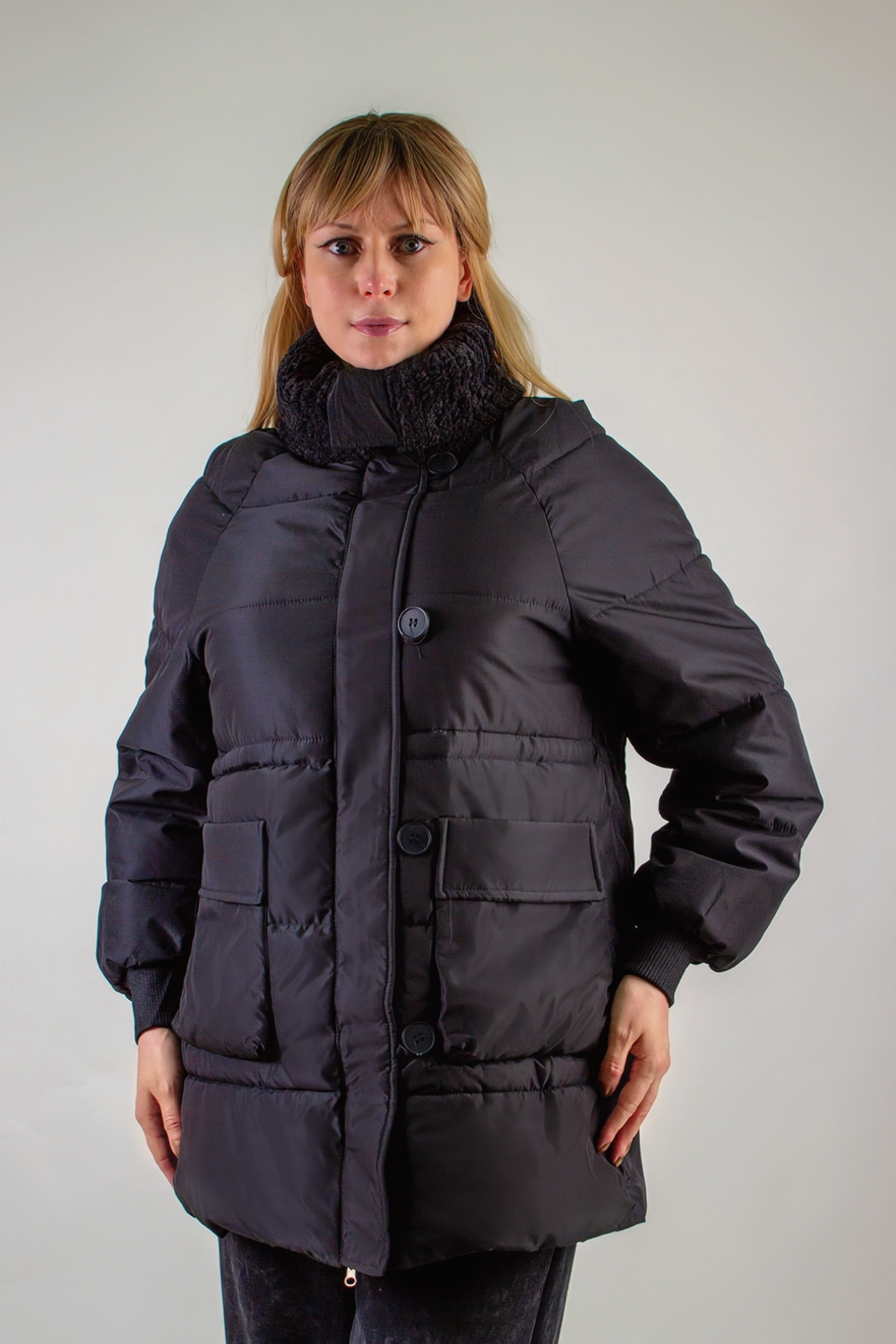 Демисезонная куртка с меховой отделкой, арт. 928 – идеальное решение для тех, кто ценит комфорт, практичность и лаконичную элегантность в прохладную погоду. Модель средней длины 75 см гарантирует оптимальное утепление тела, не сковывая движений, а особая конструкция рукавов и воротника обеспечивает дополнительный уют и защиту от ветра. Ключевые особенности: 1. Воротник-стойка с отделкой из искусственного меха «под барашка» в тон основного материала: мягкий, приятный на ощупь, не требует особого ухода и не теряет формы. 2. Двухзамковая молния – позволяет регулировать степень утепления в области талии и бедер, открывая доступ воздуха при активных передвижениях. 3. Защитная планка с крупными пуговицами на петлях – декоративный элемент, который дополнительно сохраняет тепло и придаёт модели шика. 4. Равномерная стёжка-строчка (не ультрастеп) надёжно фиксирует синтетический утеплитель, исключает образование «холостых» зон и обеспечивает идеальный климат внутри куртки. 5. Два накладных кармана спереди – вместительные, с клапанами, сохранят тепло рук и позволят носить все необходимые мелочи под рукой. 6. Трикотажные рукава на манжетах – плотно облегают запястья, предотвращая попадание холодного воздуха внутрь рукавов. Практичная длина ниже бедра делает куртку универсальным вариантом как для городских прогулок, так и для поездок в общественном или личном транспорте. Черный цвет – классический, не маркий, легко комбинируется с любыми предметами гардероба: джинсами, брюками чинос или спортивными костюмами. Демисезонная куртка арт. 928 в чёрном цвете станет вашим незаменимым спутником осенью и весной: она защитит от ветра и легкого дождя, создаст атмосферу комфорта при ежедневных поездках и прогулках. Оцените идеальное сочетание практичности и стиля – обновите гардероб этой осенью вместе с курткой, которая не подведёт в любой ситуации