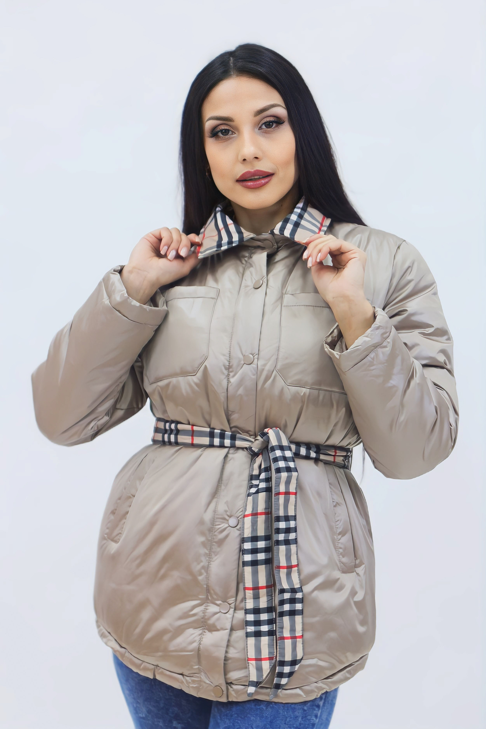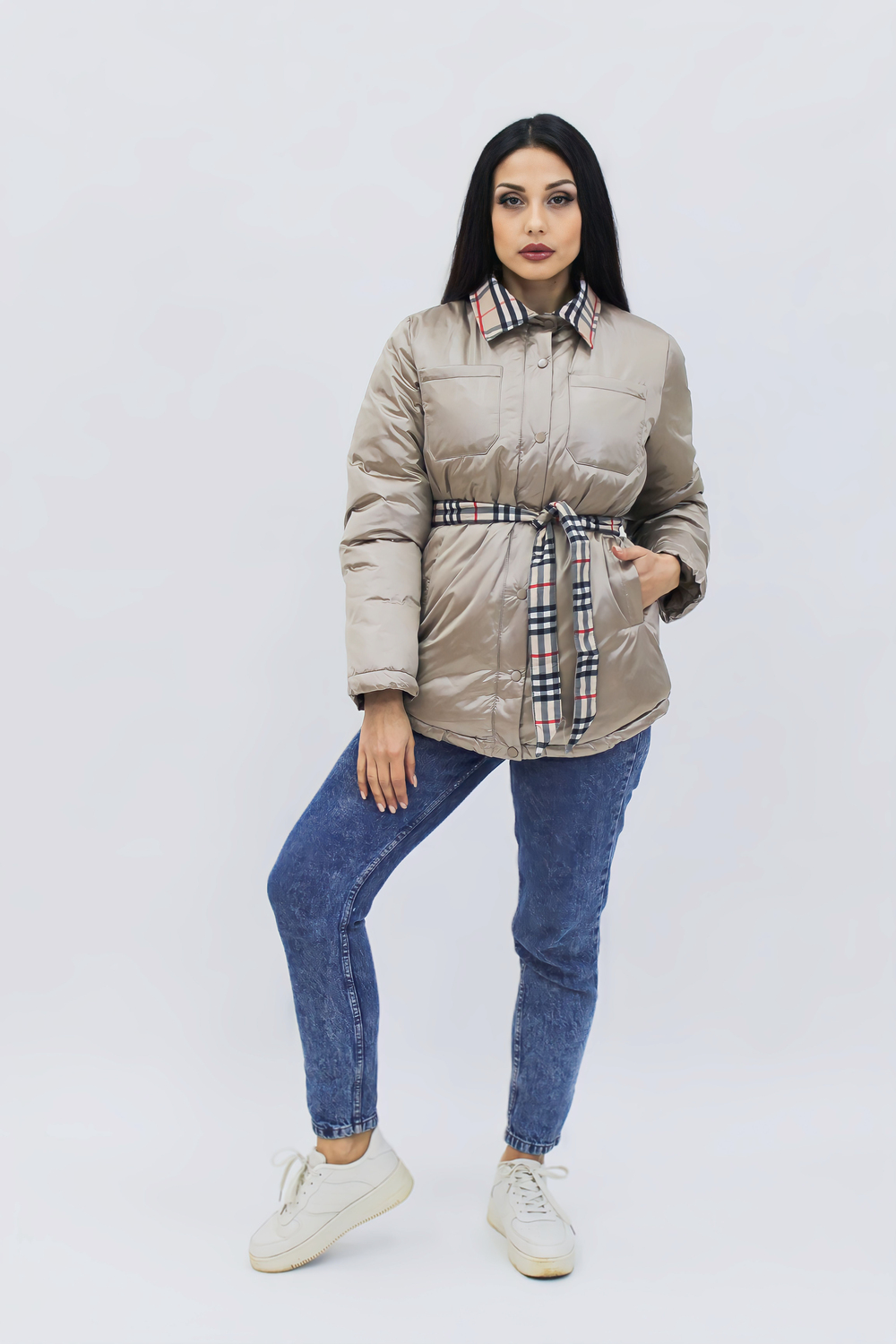 Демисезонная женская куртка весна осень Клетка 8762 [бежевый]