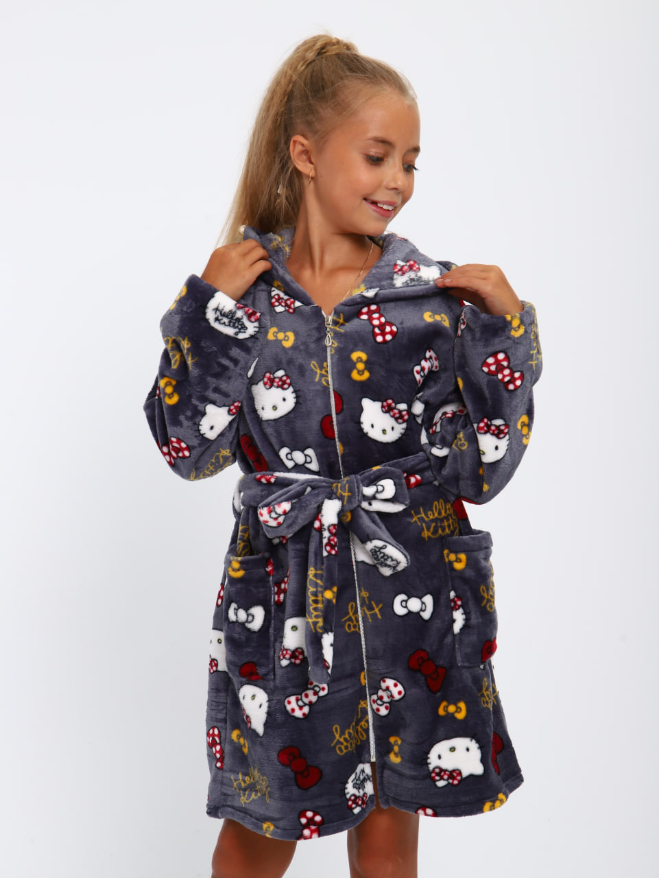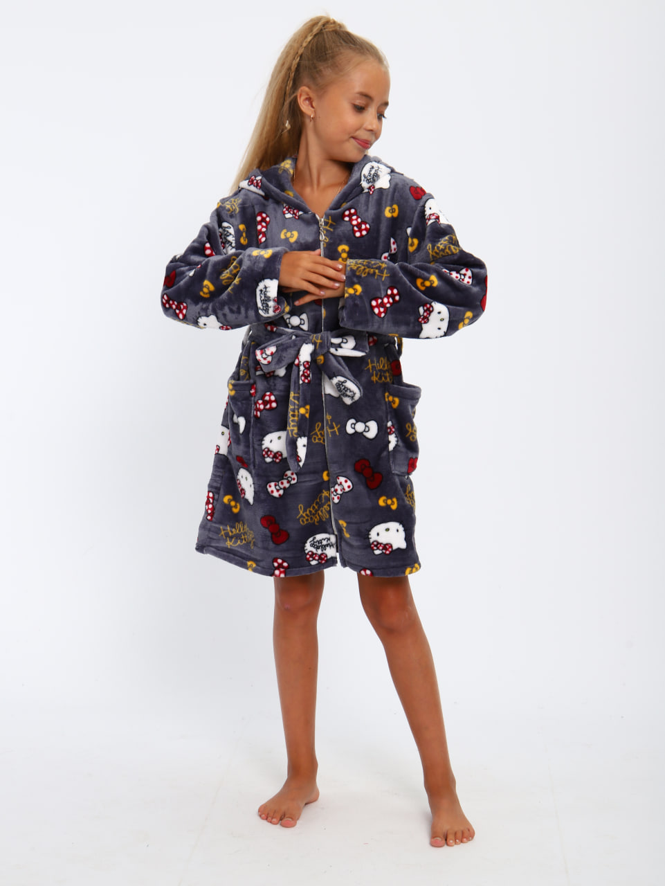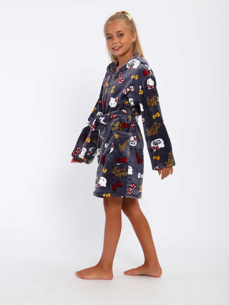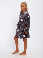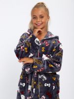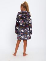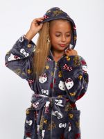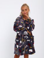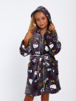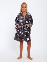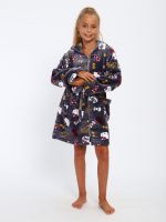 Мягкий детский халат из ткани экстрасофт подарит тепло и уют вашему малышу. Лёгкий, нежный и очень приятный на ощупь материал прекрасно сохраняет тепло и быстро сохнет, поэтому халатик удобно надевать после купания или просто дома для комфорта. Свободный крой не сковывает движений, капюшон защищает от прохлады, а пояс позволяет регулировать посадку. Яркие забавные принты делают модель ещё более привлекательной для детей и превращают её в любимую домашнюю одежду.