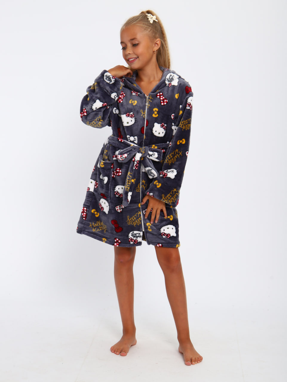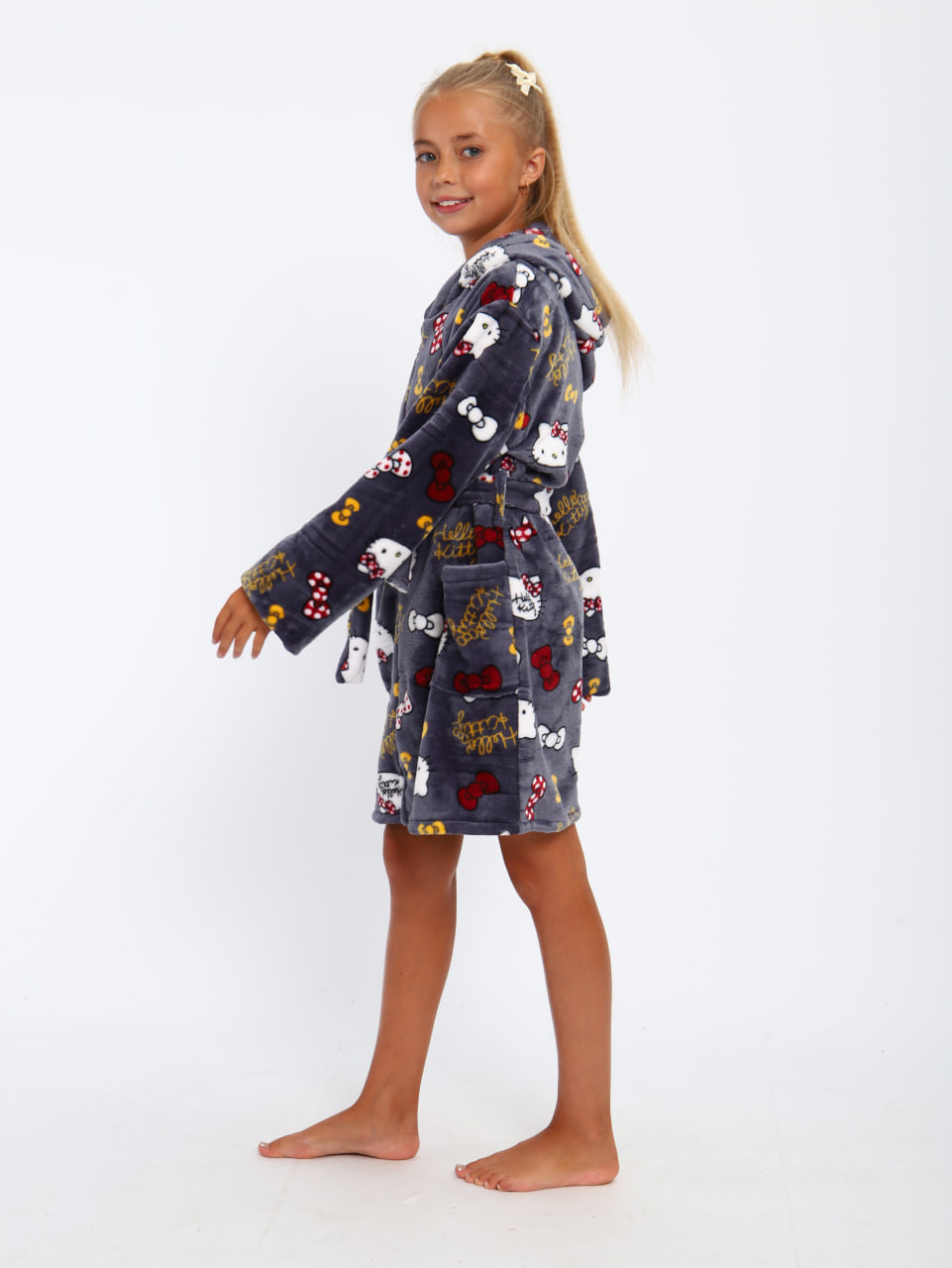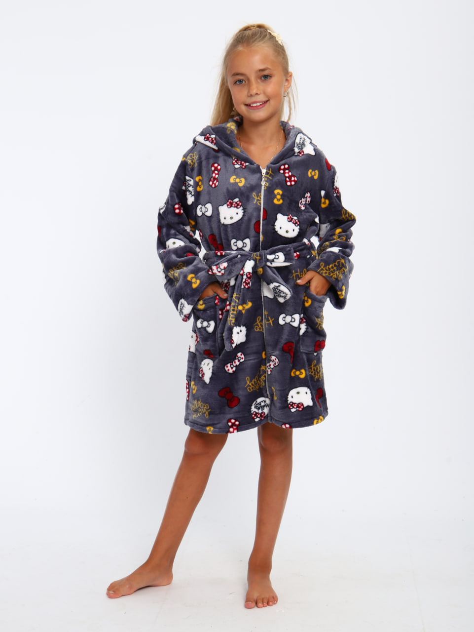 Мягкий детский халат из ткани экстрасофт подарит тепло и уют вашему малышу. Лёгкий, нежный и очень приятный на ощупь материал прекрасно сохраняет тепло и быстро сохнет, поэтому халатик удобно надевать после купания или просто дома для комфорта. Свободный крой не сковывает движений, капюшон защищает от прохлады, а пояс позволяет регулировать посадку. Яркие забавные принты делают модель ещё более привлекательной для детей и превращают её в любимую домашнюю одежду.