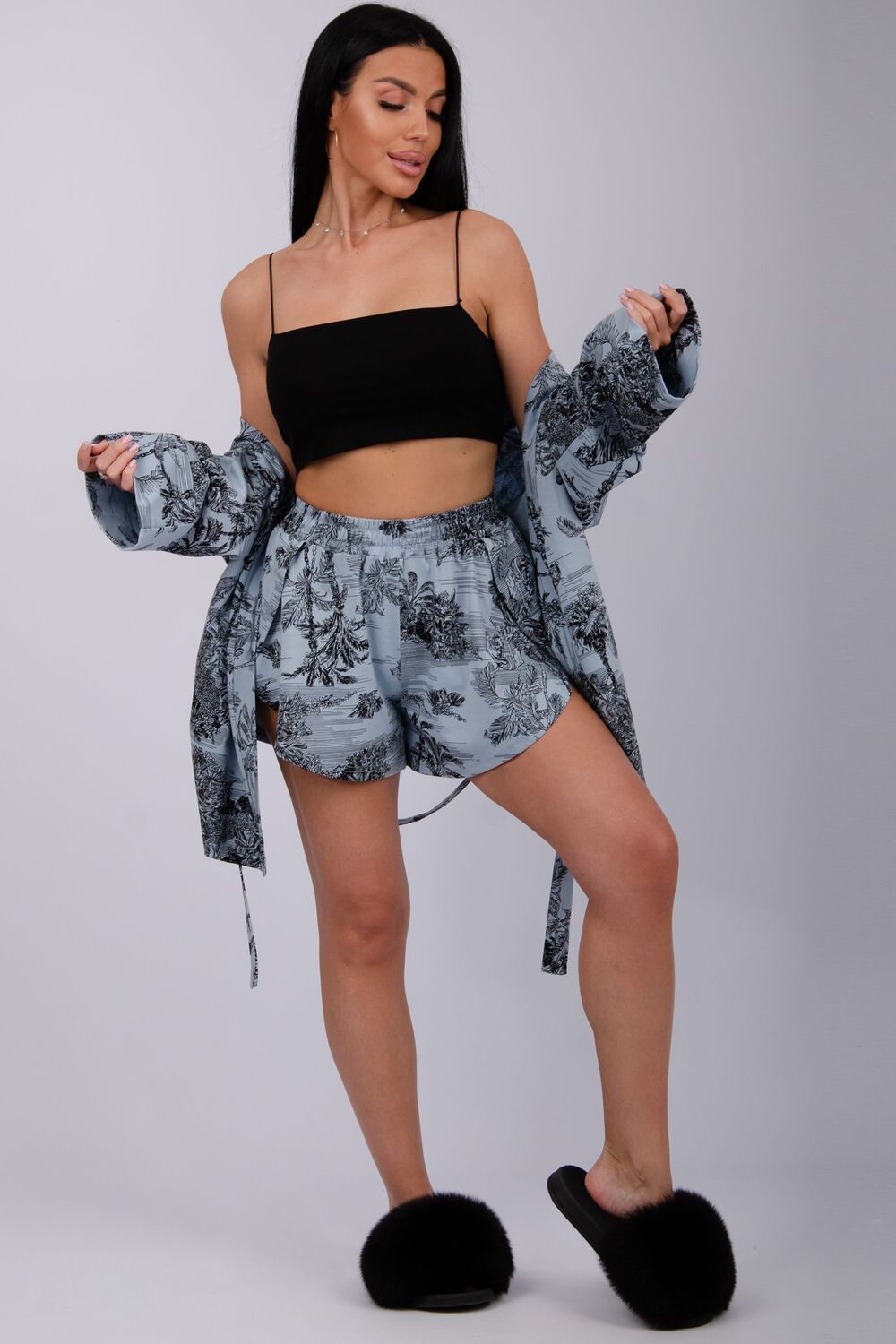 Супер стильный костюм в пижамном стиле - шорты и кимоно халат на поясе для женщин, подойдет для сна и отдыха, подойдет для сна и отдыха и зимой, и летом. А также станет прекрасным акцентом в базовом гардеробе и подойдет для создания расслабленного весеннего оверсайз образа на вечер или пижамную вечеринку. Мягкая приятная к телу струящаяся ткань и свободный силуэт обеспечивает комфорт во время вашего путешествия на море или отдыха. Наш комплект из 2-х предметов подчеркнет женственность и сексуальность. ТОП В КОМПЛЕКТ НЕ ВХОДИТ!