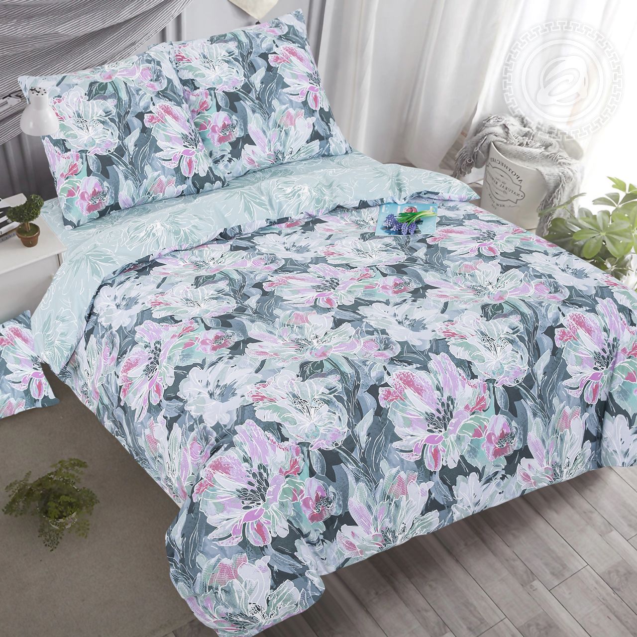 Если вы скучаете по лету и любите цветочные принты, то обратите внимание на постельное белье из поплина «Дивея». Оно украшено оригинальной композицией с нотками женственности и романтики. Сказочные цветы на комплекте из хлопка выполнены в необычной технике и палитре красок. Хочется рассматривать каждый штрих рисунка, открывая для себя всё новые детали. Он ассоциируется и с живописным садом, и приятной прохладой, и красочными пейзажами. Постельное белье с цветами погрузит в атмосферу расслабления, отдыха и уюта. Украшение спальни, которое подарит настроение лета.