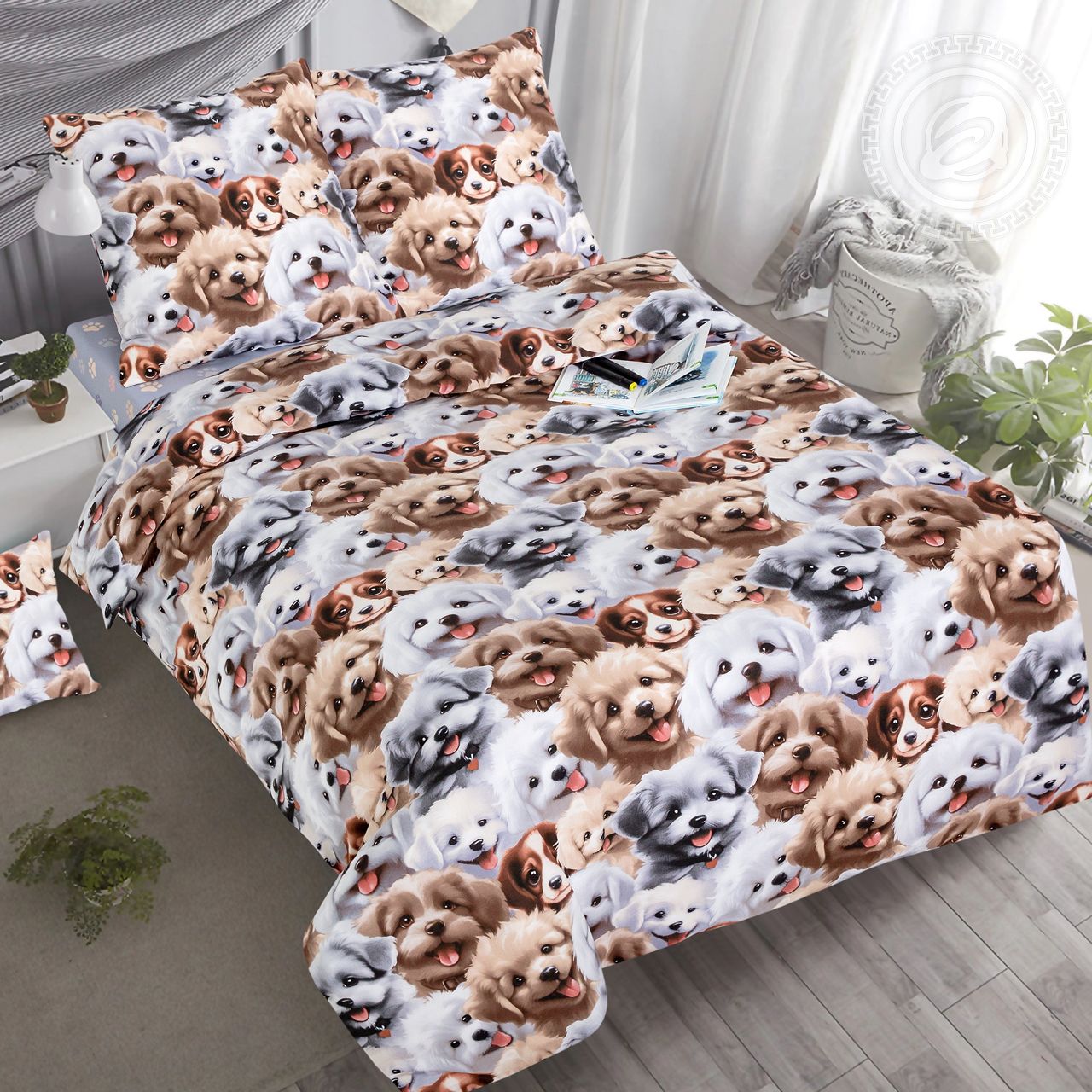 «Дружок» – постельное белье с собачками из хлопка, которое поднимет настроение и украсит спальню. Главные герои нашего дизайна – добрые и веселые щенки, которые умиляют с первого взгляда. Комплект из поплина с озорными героями станет чудесным дополнением интерьера.