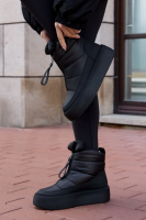 Женские зимние ботинки дутики на платформе - это не просто обувь, это настоящий стильный аксессуар для вашего гардероба. Теплые непромокаемые дутыши со шнуровкой идеально подойдут для зимних прогулок. Регулируемые завязки дают возможность подобрать оптимальную плотность посадки, обеспечивая идеальное прилегание обуви к ногам. Подошва эффективно справляется с различными неровностями поверхности, обеспечивает минимальное скольжение на льду. Луноходы с натуральным мехом станут надежным спутником в любую погоду, благодаря высокой подошве и водонепроницаемому материалу в этих сапогах ваши ноги всегда будут в тепле и сухости. Эти сапожки прекрасно подойдут в качестве демисезонной обуви и обуви для зимы. Обувь на замке легко надевать и снимать, что особенно удобно в повседневной носке. Они подходят как для женщин, так и для подростков, делая ваш образ молодежным и модным. Легкие короткие дутыши на меху - это не только уют и тепло, но и стильный акцент вашего образа. Благодаря мягкому, гибкому материалу и продуманной колодке, обувь идеально садится на ногу, даря ощущение невесомости и свободы движений.