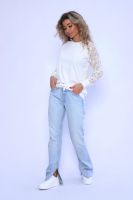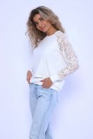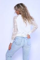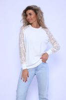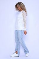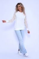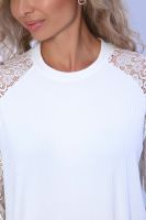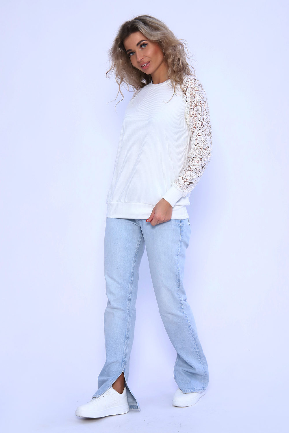Джемпер женский, рукав реглан выполнен из гипюра, на рукаве манжет, джемпер на поясе. Подойдет как и на каждый день, так и на праздник . Большой размерный ряд от 44 до 60 размера. По спинке допустим шов. На модели 46 размер.
