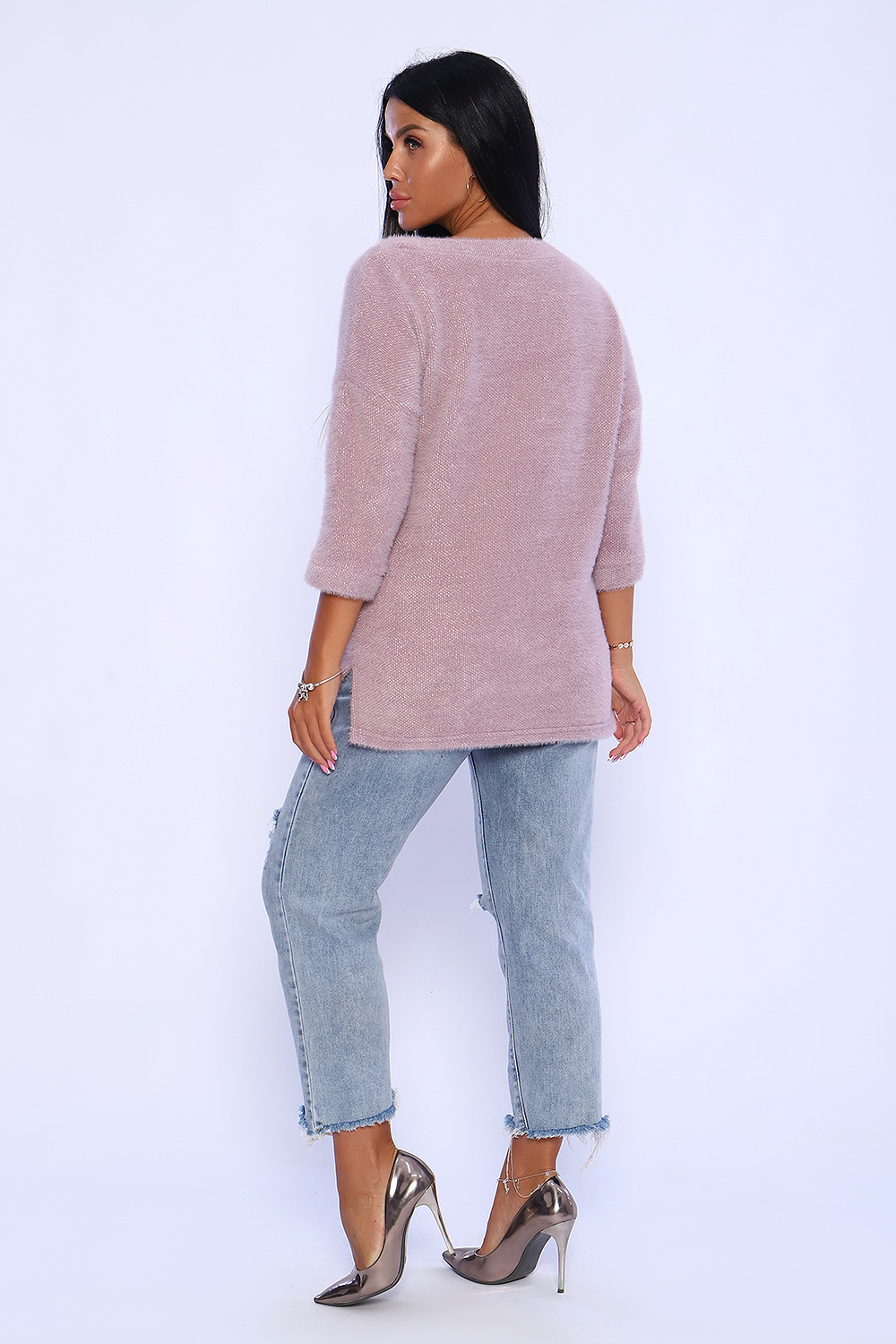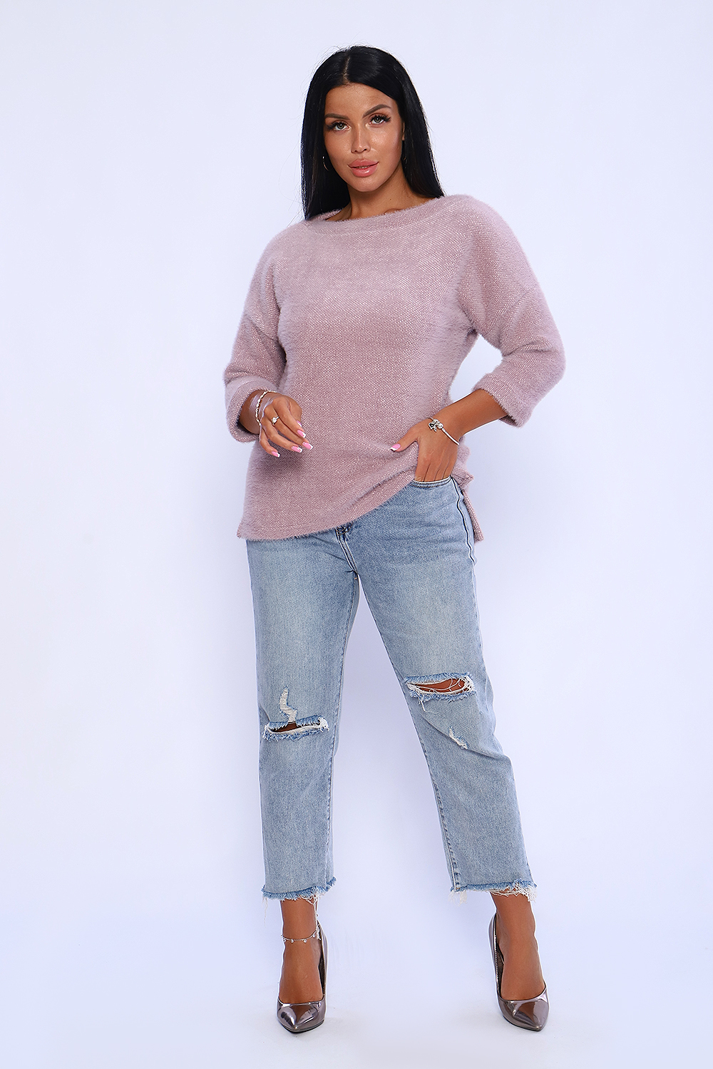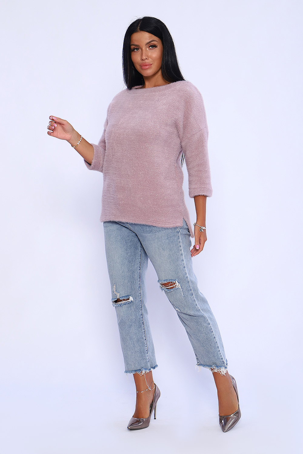 Джемпер женский из мягкого, приятного к телу вязаного трикотажа. Горловина в виде лодочки обработана обтачкой , спущенная пройма , рукав на манжете длиной 3/4. Низ спинки удлинён, по бокам небольшие разрезы. Оригинальная вязка делает джемпер незаменимой вещью в гардеробе женщины, предпочитающей комфорт и удобство. Благодаря мягкому переплетению нитей толстовку можно одеть как самостоятельно, так и под верхнюю одежду. Универсальный крой джемпера позволит вписать его как в офисный гардероб, так и в повседневный образ. Современная палитра цветов и широкий размерный ряд позволит подобрать модель под любое ваше настроение. Длина рукава в таблице измерений указана от начала горловины.
