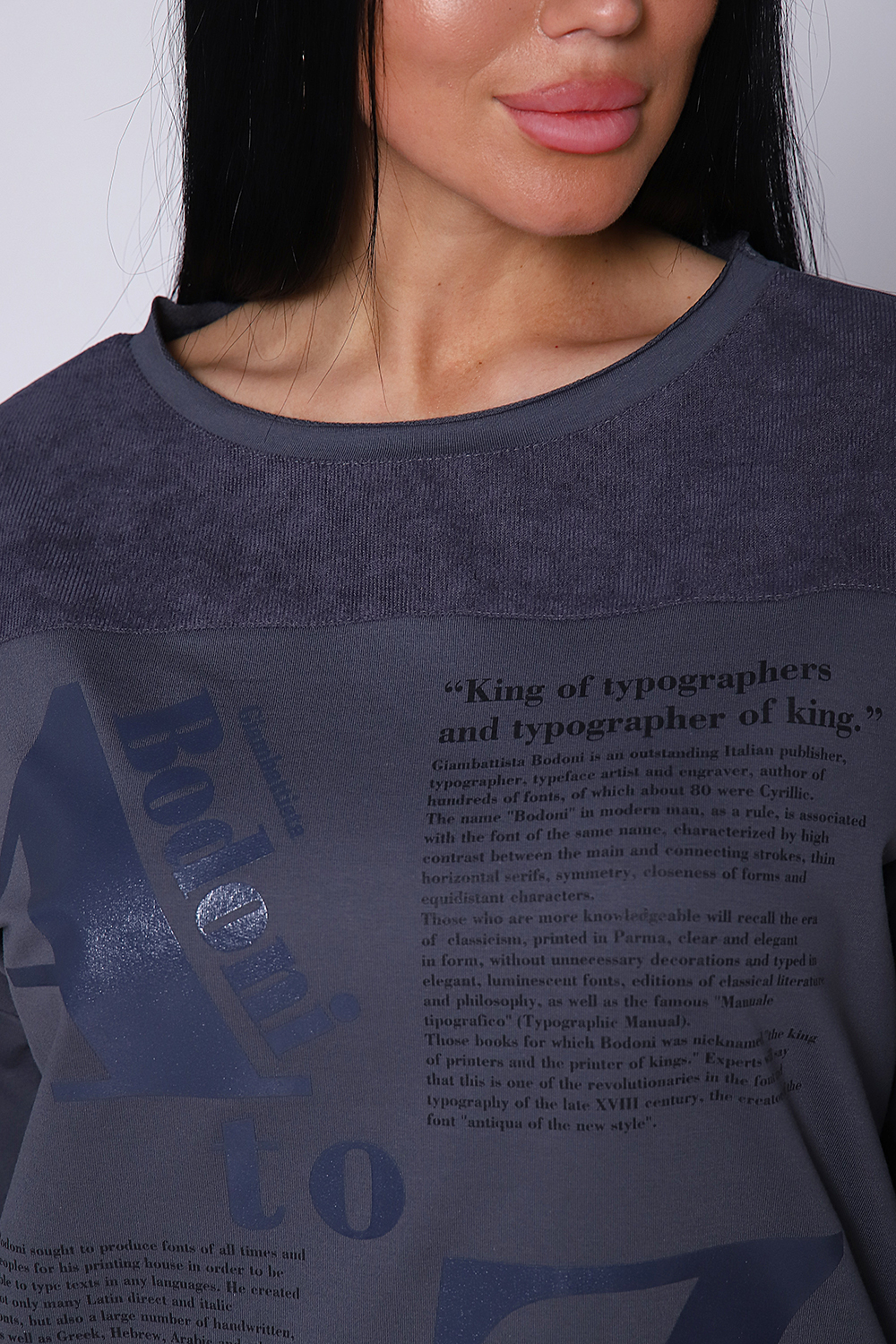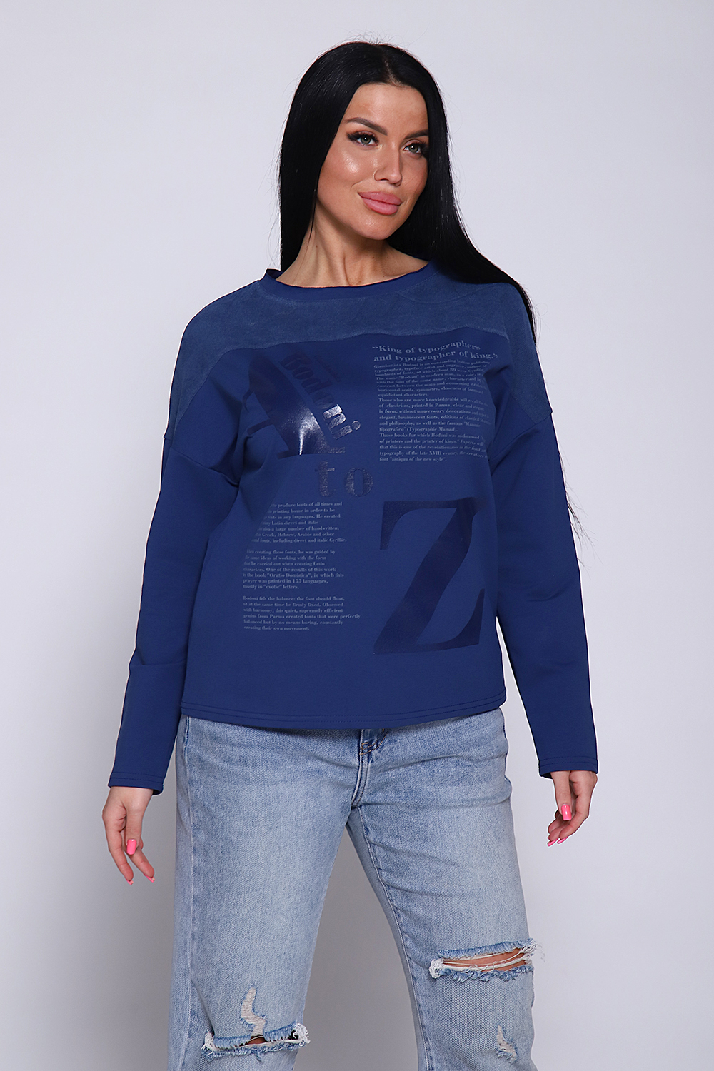 Джемпер женский из комбинированной ткани футера 2-х нитка с лайкрой качества кардэ и микровельвета. Свитшот с принтом свободного оверсайз кроя с круглой горловиной, обработанной обтачкой с открытым краем, спущенная пройма, длинный рукав. На груди кокетка из микровельвета, гармонично сочетается с принтом в виде газеты. Стильный, комфортный джемпер- отличная вещь для офисного гардероба деловых женщин любой фигуры и возраста. Широкий размерный ряд и красивые оттенки данной модели позволят вам выглядеть элегантно и привлекательно. Длина рукава в таблице измерений указана от начала горловины.