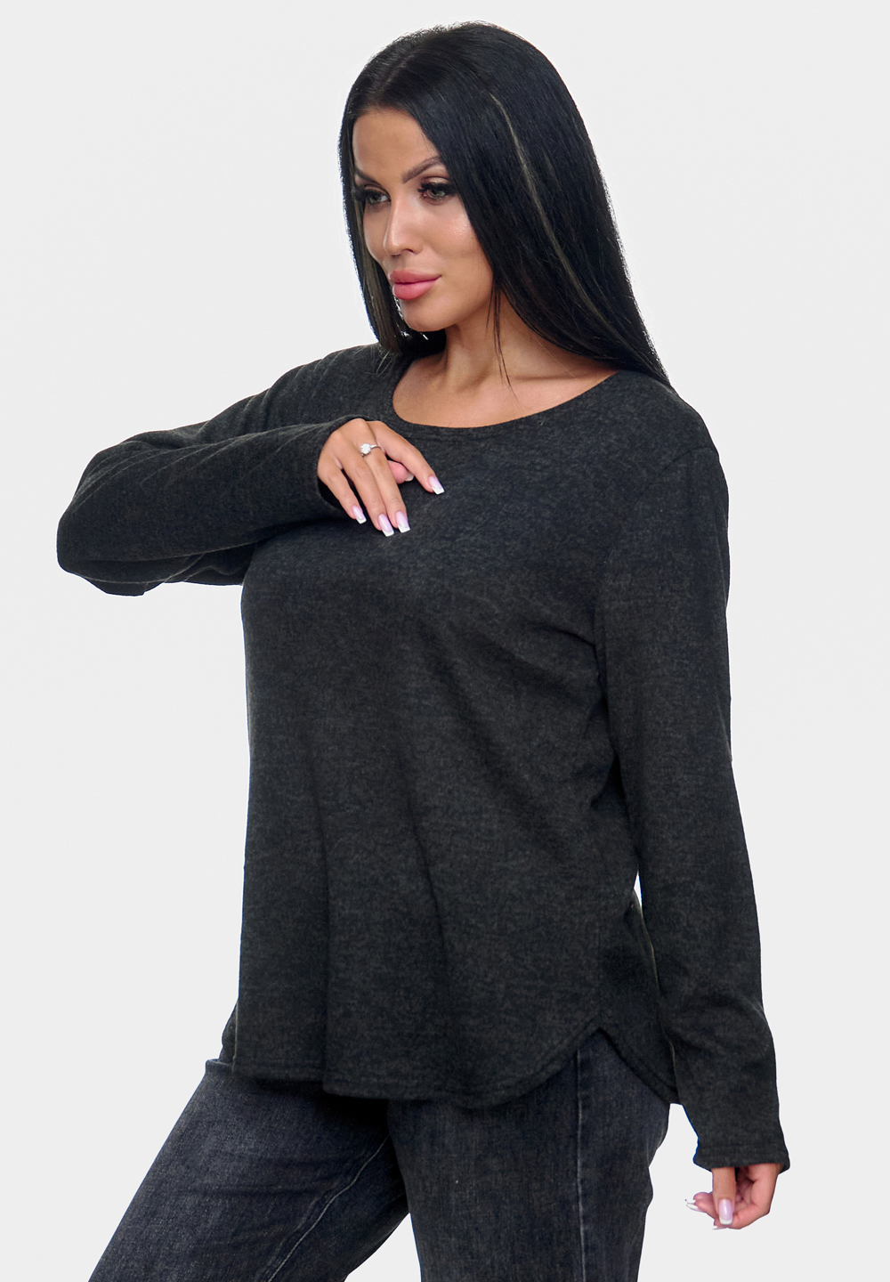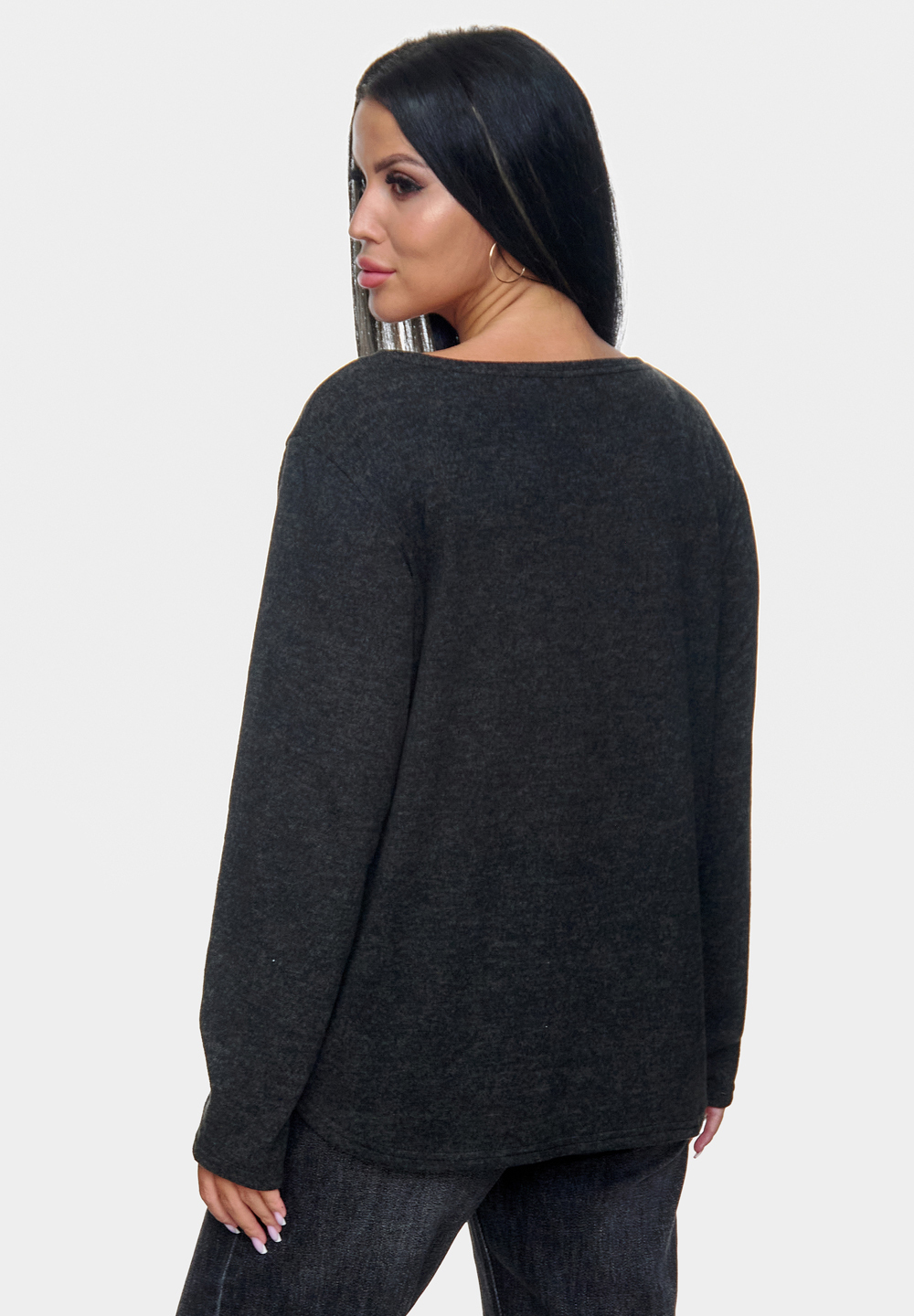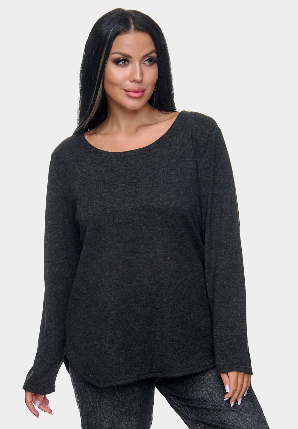 Мягкий джемпер из ангоры софт с округлым вырезом и свободным кроем. Удобная и практичная модель.