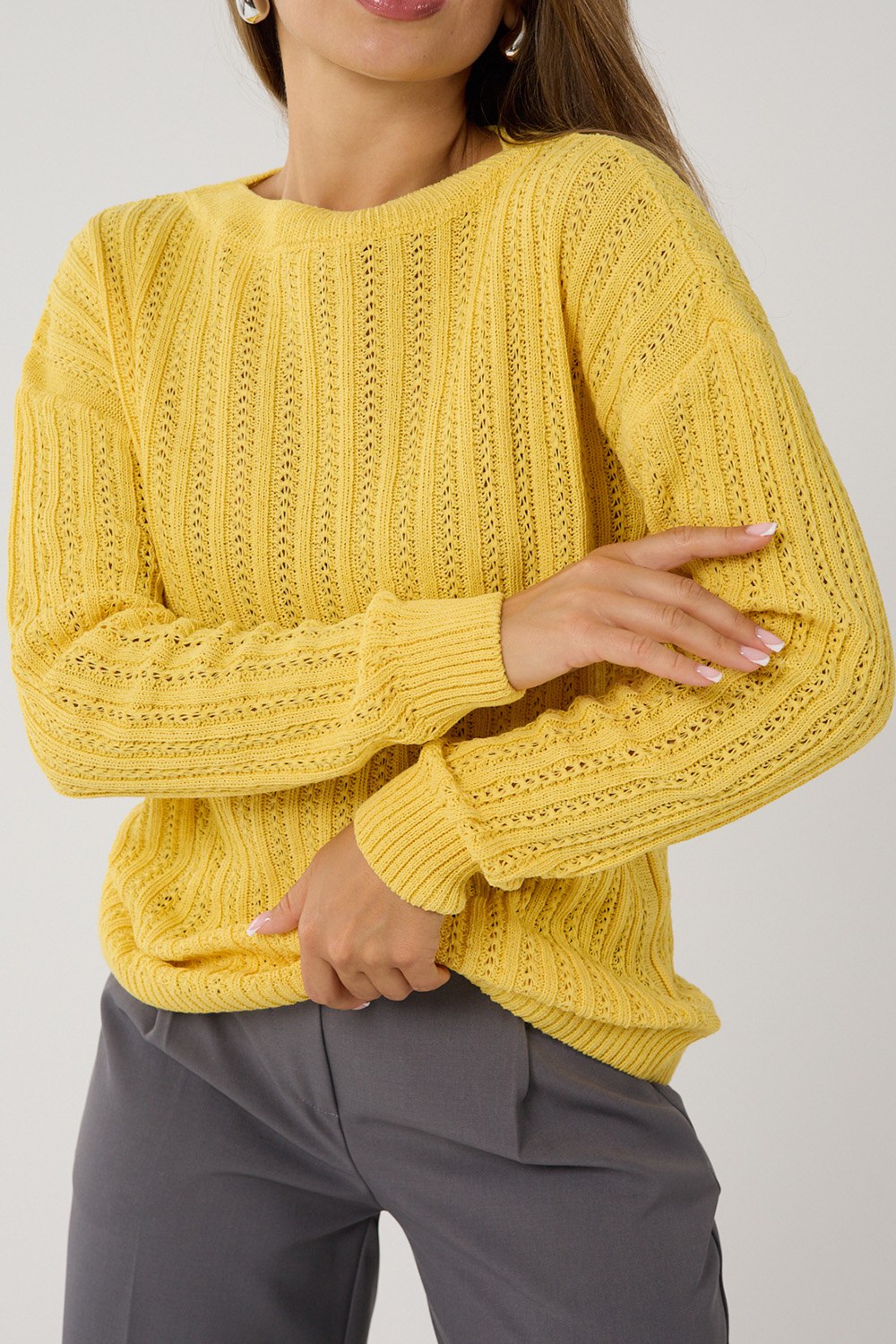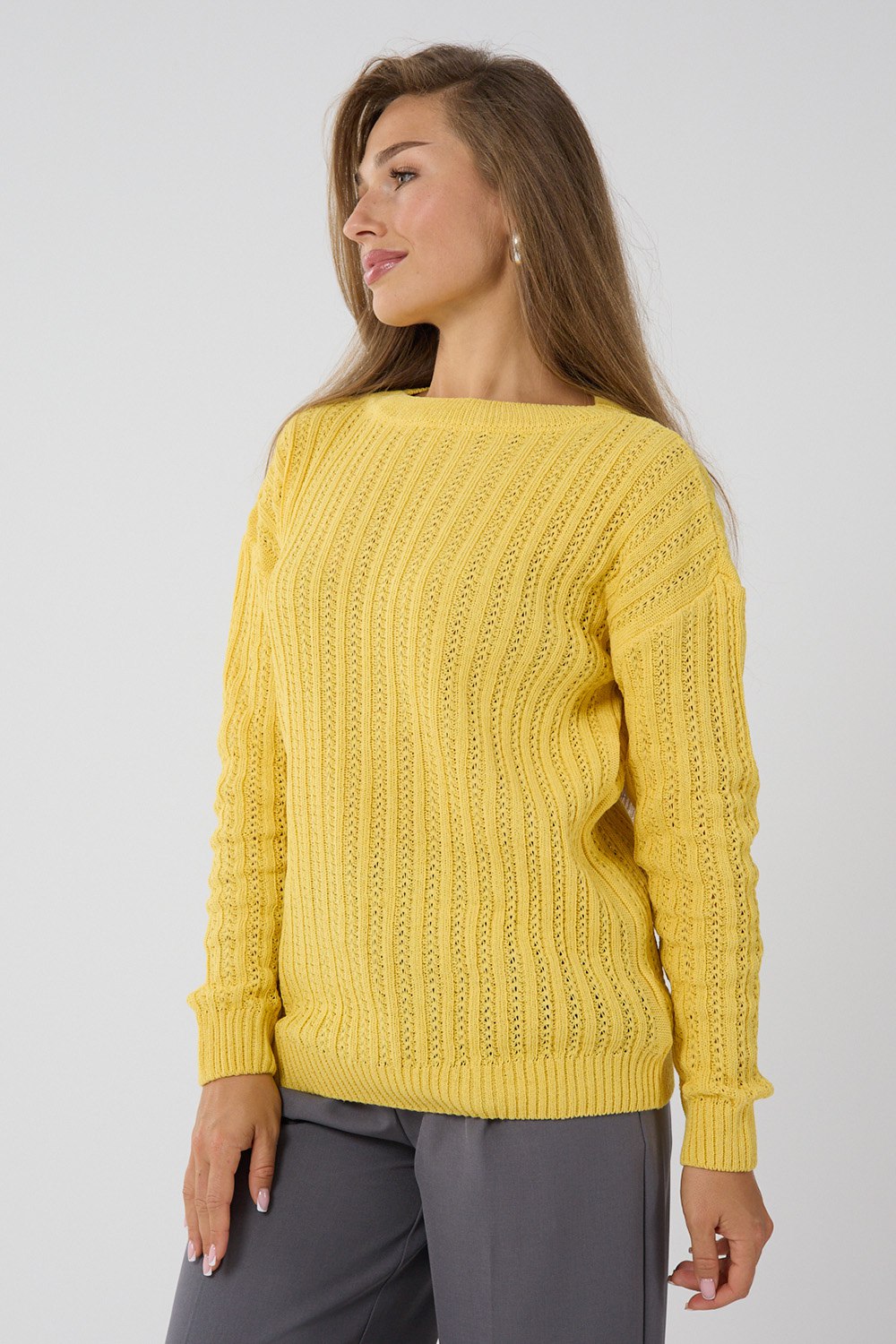 Джемпер женский из премиальной турецкой пряжи станет незаменимой частью вашего гардероба. Универсальный дизайн свитера женского идеально подходит как для офиса, так и для повседневной носки. Длинный рукав и тонкий, но теплый материал обеспечивают комфорт в прохладную погоду. Узор добавляет изделию изысканности, делая его подходящим даже для особых случаев. Создайте свой неповторимый образ с нашим базовым джемпером, в котором сочетаются комфорт и стиль в каждой детали!