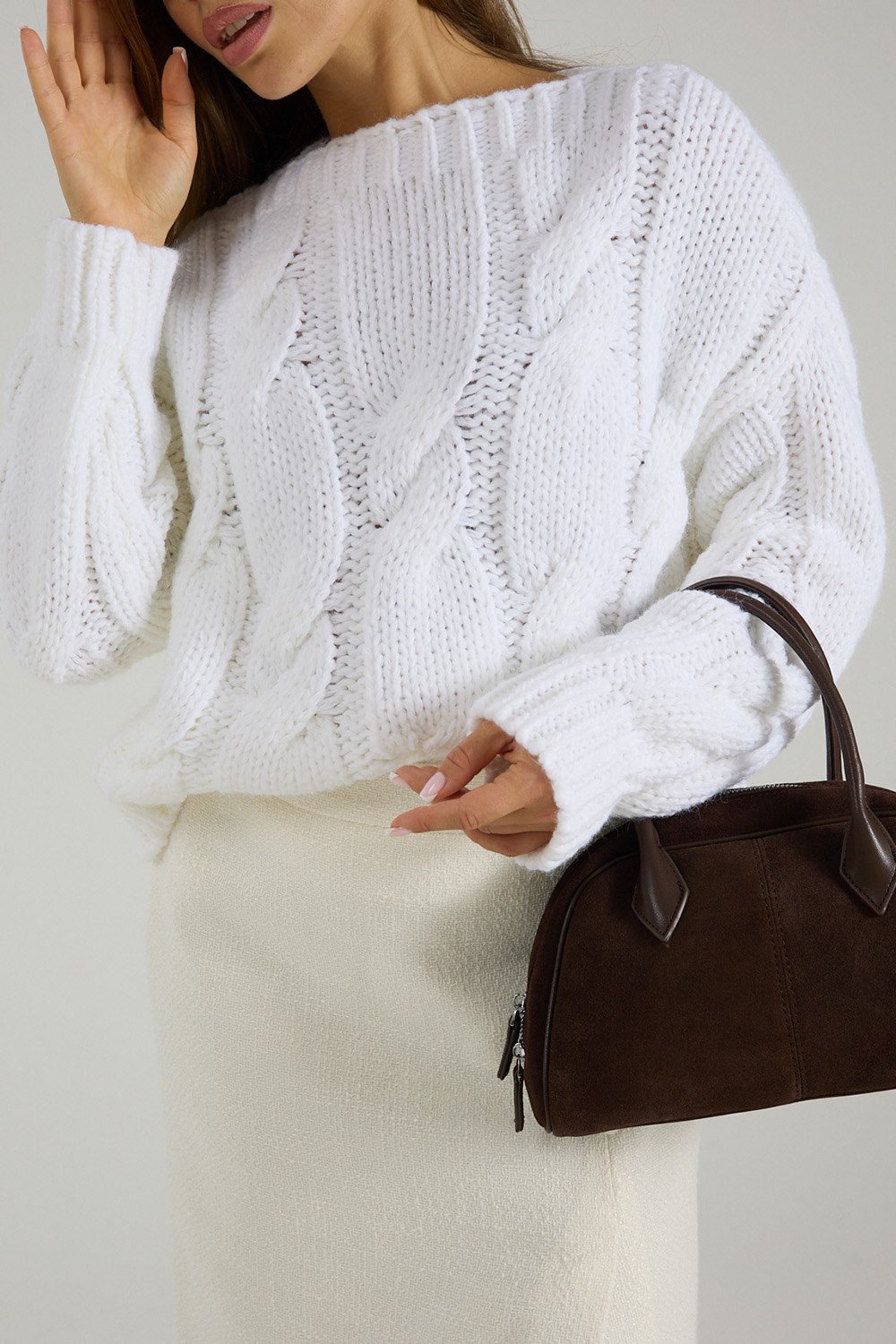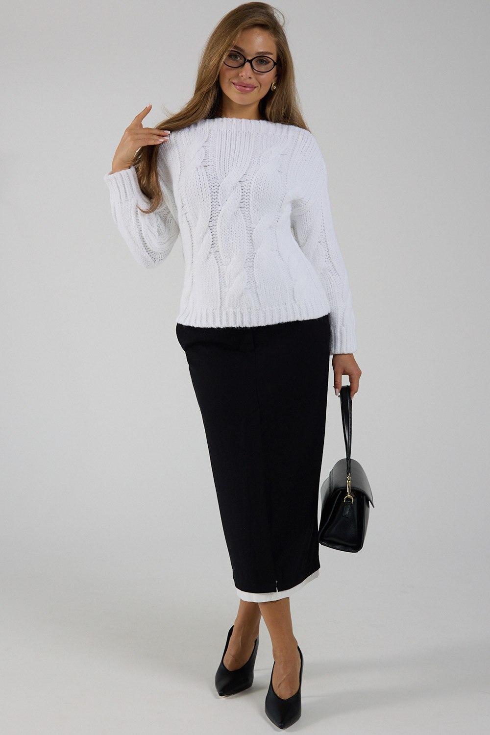 Женский вязаный джемпер от бренда «Юмтекс» — это стильное и комфортное решение для создания повседневных, деловых и праздничных образов. Свободный крой обеспечивает максимальный комфорт движений и идеально подходит для любой фигуры. Модель выполнена из комфортного и теплого материала составом 30% шерсть и 70% акрил, что гарантирует идеальное сочетание тепла и удобства в прохладные осенние и зимние дни. Элегантный рельефный узор вязаные косички придает джемперу объемный и текстурный вид, добавляя образу индивидуальности.