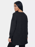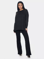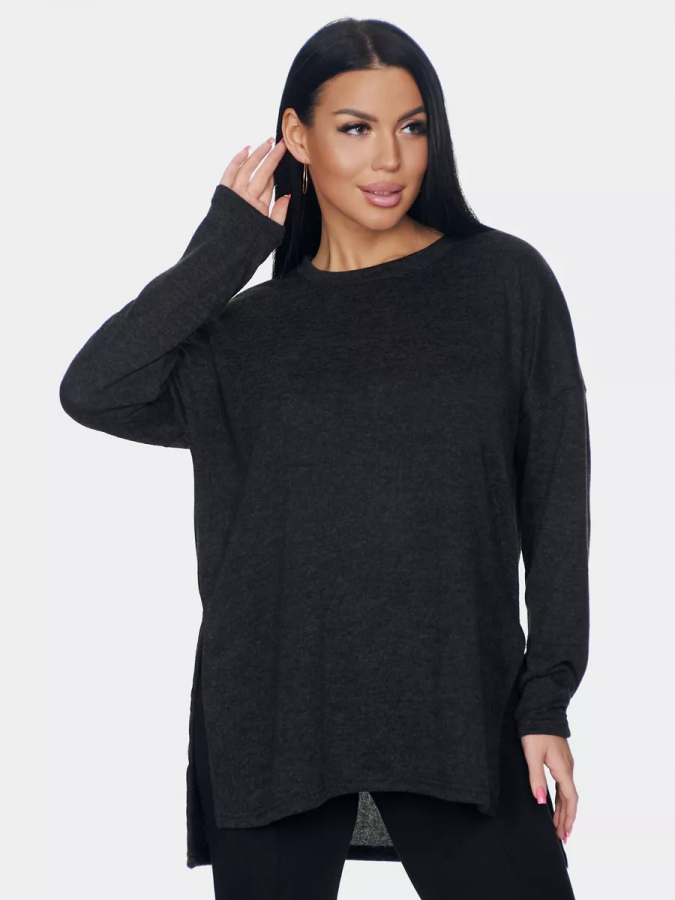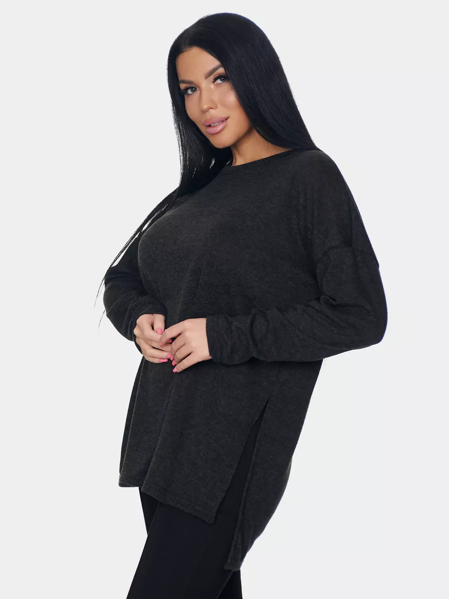 Длинный джемпер из ангоры софт обволакивает мягкостью, нежностью и теплом. Трикотажный пуловер меланжевый с длинными рукавами и с округлым вырезом горловины. Свободный крой и разрезы по бокам идеальны для любого типа фигуры. Трикотажный джемпер отлично подойдет для беременных и для женщин plus size.