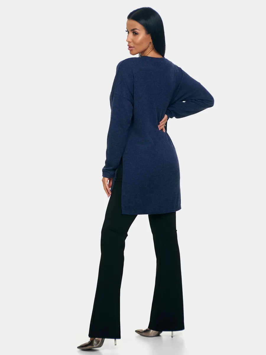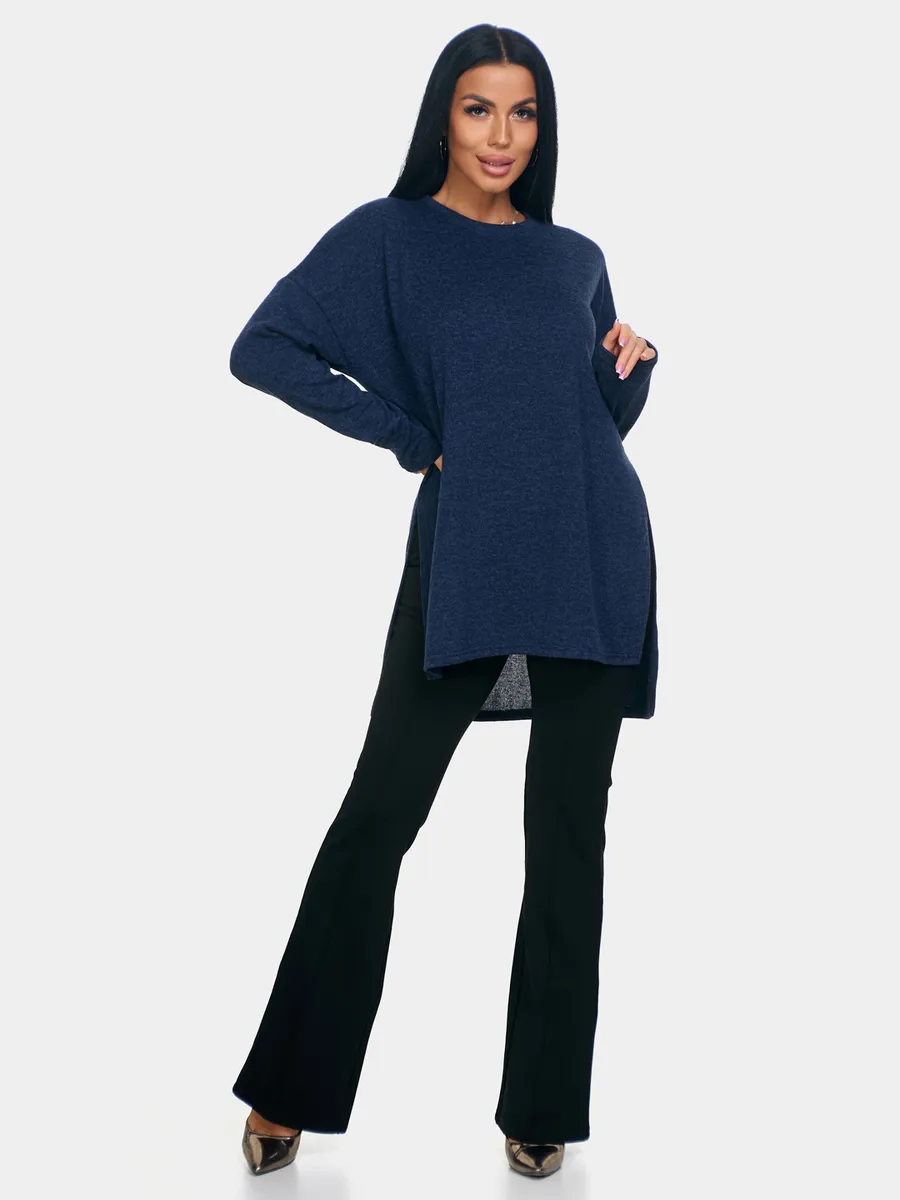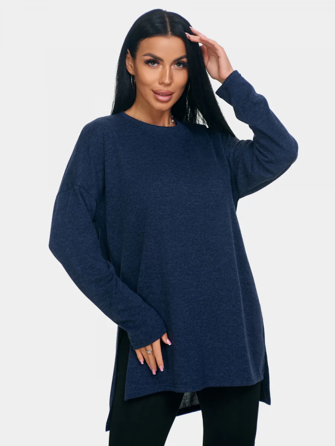 Длинный джемпер из ангоры софт обволакивает мягкостью, нежностью и теплом. Трикотажный пуловер меланжевый с длинными рукавами и с округлым вырезом горловины. Свободный крой и разрезы по бокам идеальны для любого типа фигуры. Трикотажный джемпер отлично подойдет для беременных и для женщин plus size.