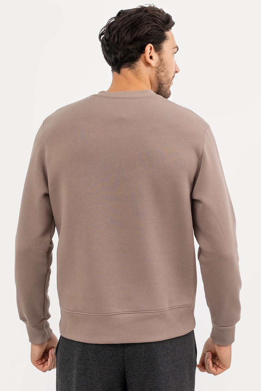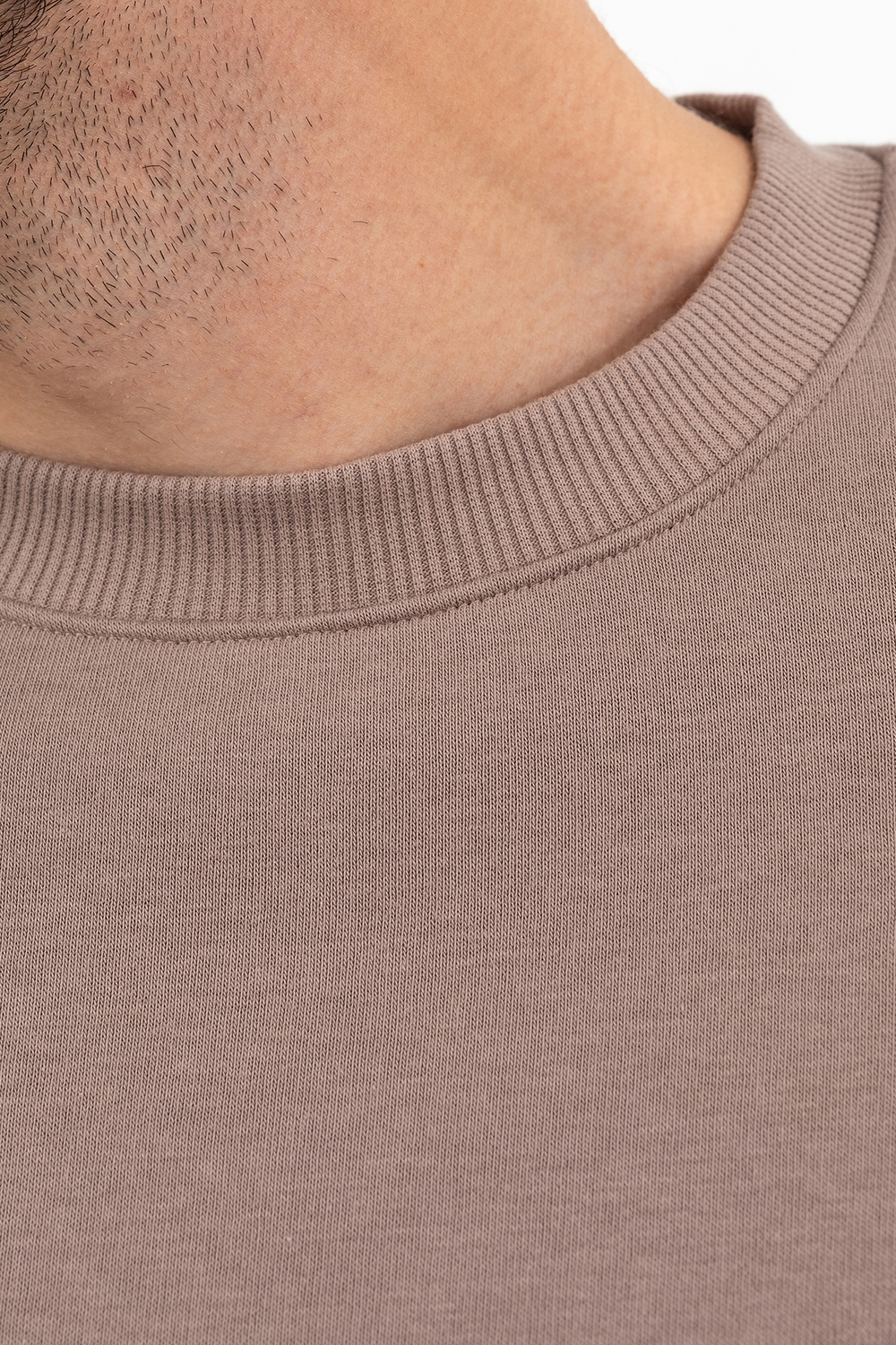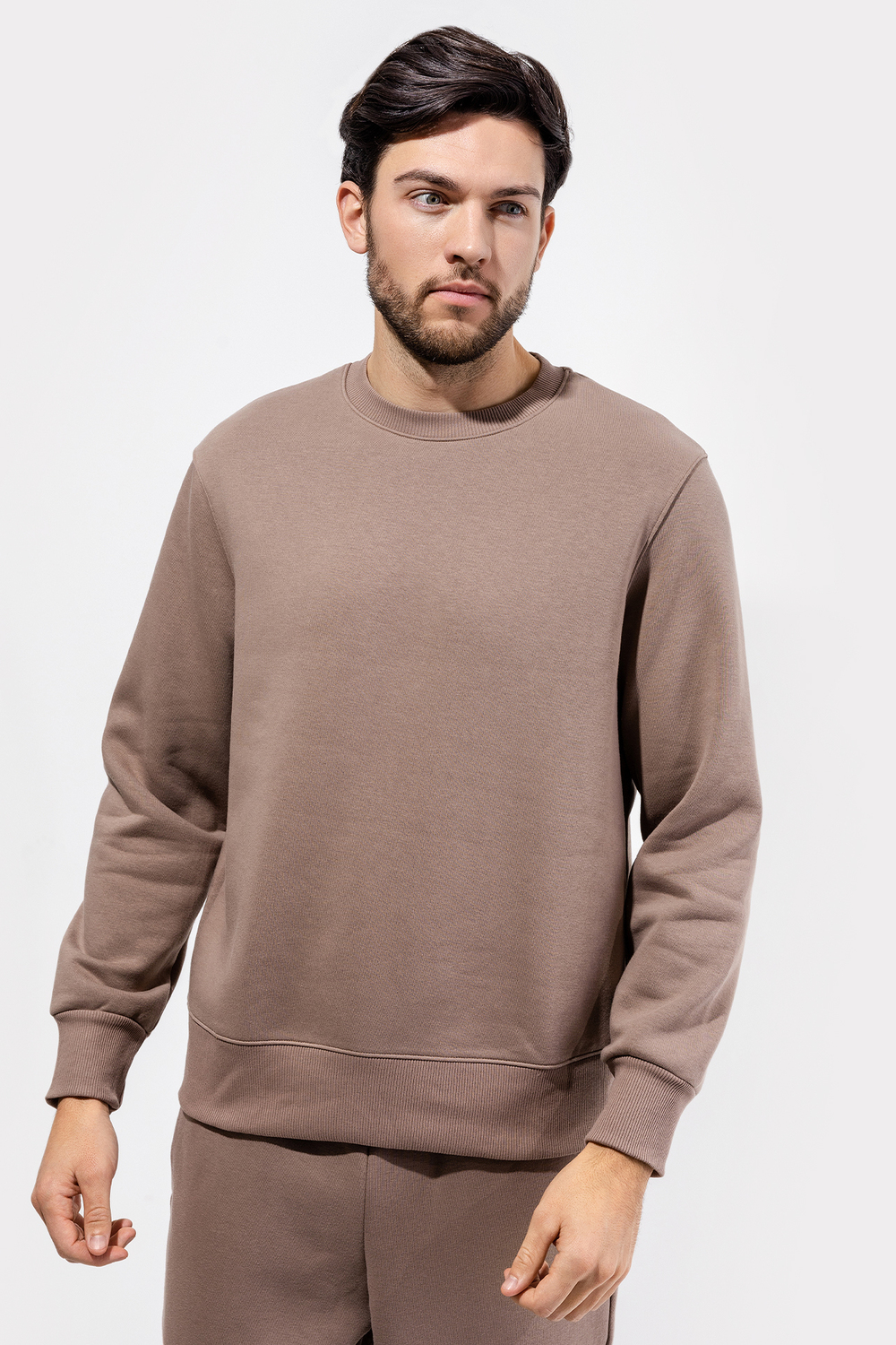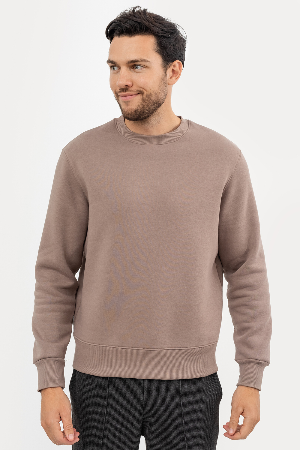 Джемпер из трикотажного футера с теплым подчесом. Длина до середины бедер, силуэт прямой. Линия плеча спущена. Рукава длинные, с притачными манжетами. Горловина круглой формы. Отличный вариант для стильных городских образов!
