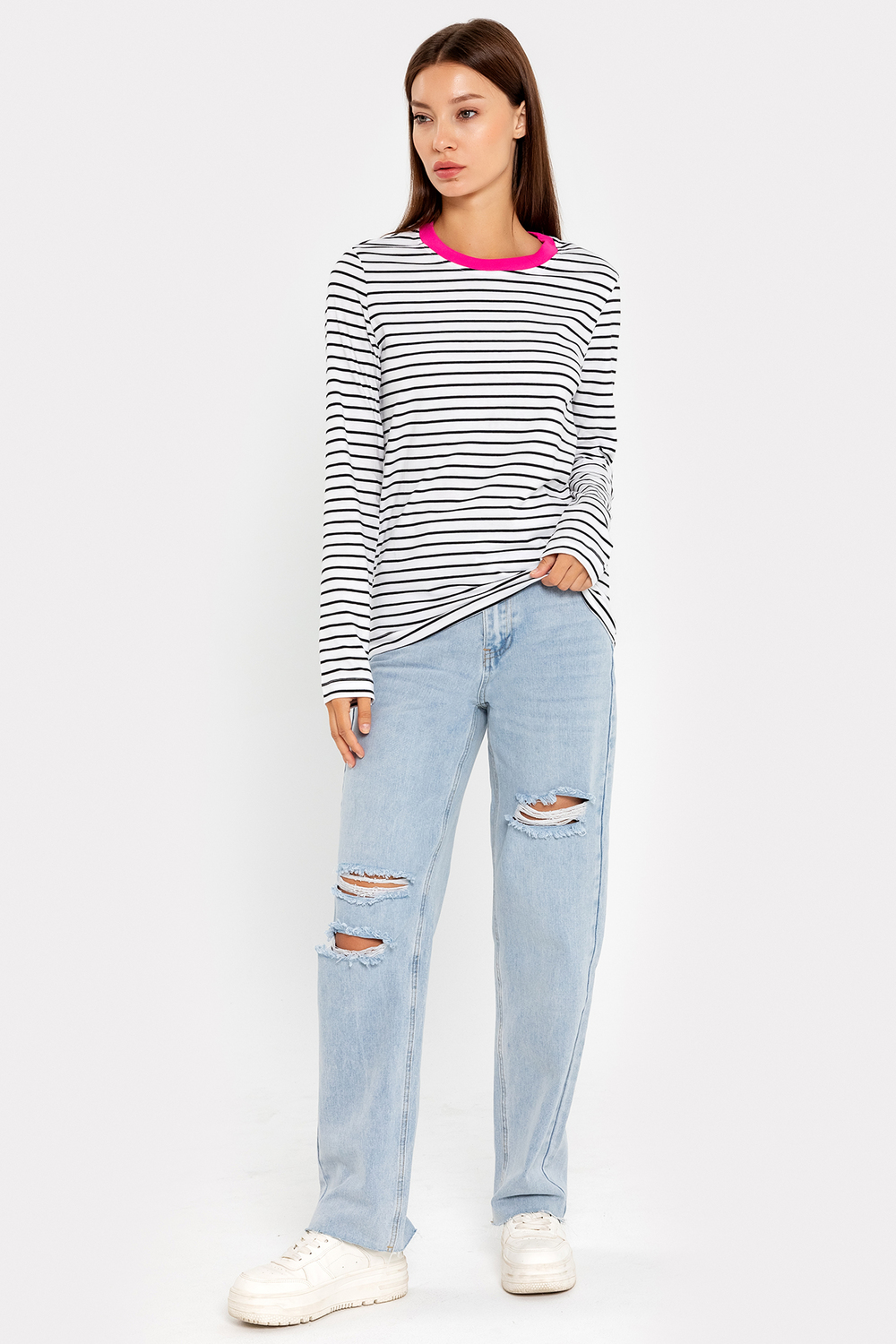 Джемпер женский из качественного хлопка, свободного силуэта. Вырез круглый, рукава длинные на манжетах. Спущенная линия плеча и углубленные проймы не сковывают движений. Отличный базовый вариант на каждый день.