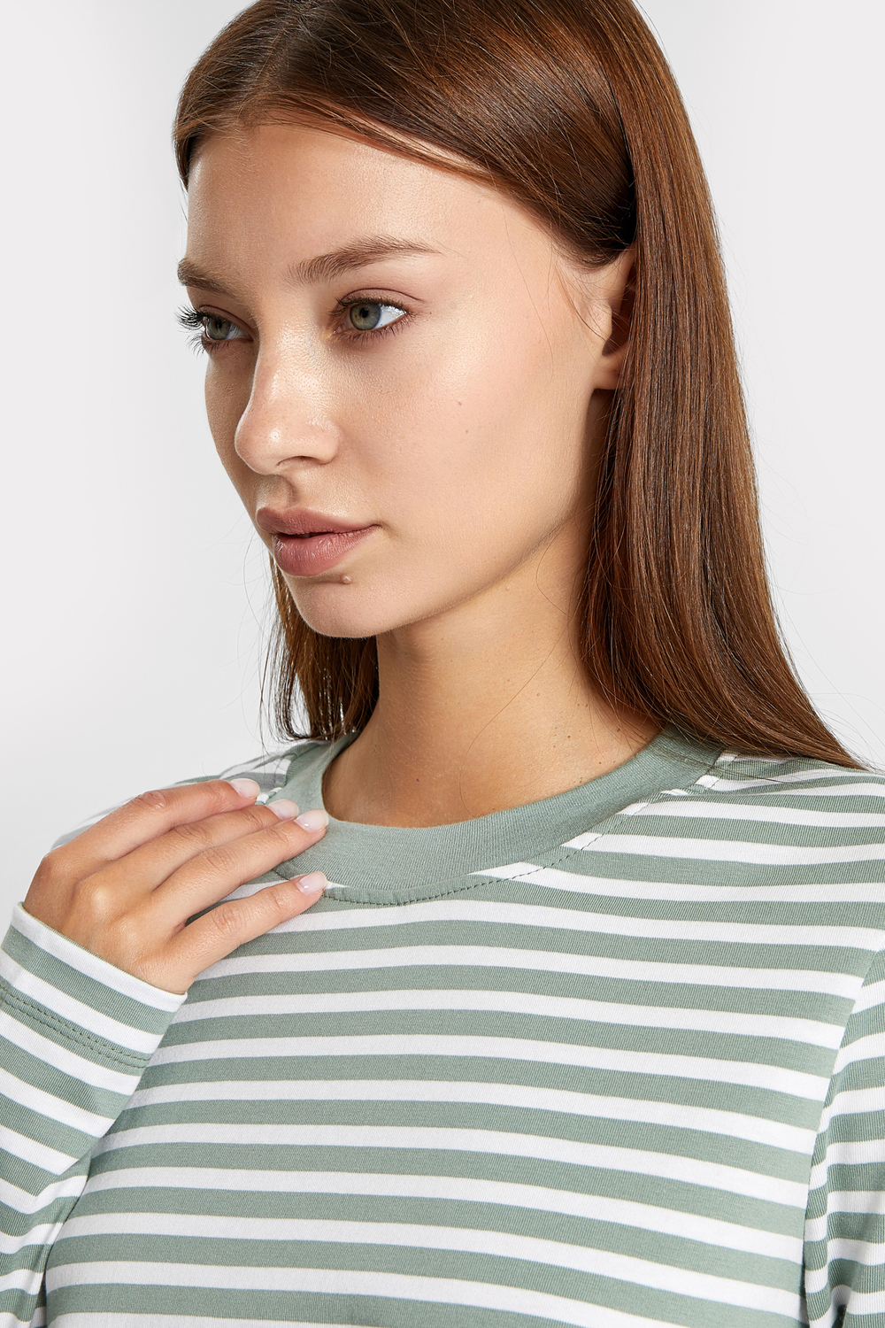 Джемпер женский из качественного хлопка, свободного силуэта. Вырез круглый, рукава длинные на манжетах. Спущенная линия плеча и углубленные проймы не сковывают движений. Отличный базовый вариант на каждый день.