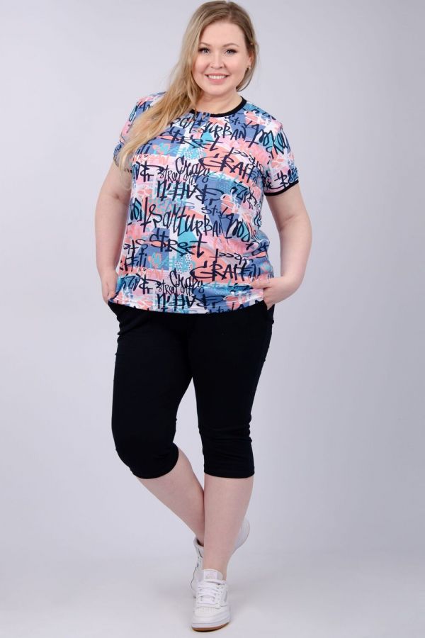 Легкий комплект из мягкой вискозы идеально подойдет для летних дней и активного отдыха. В набор входит стильная футболка и удобные бриджи, которые обеспечивают свободу движений во время тренировок, занятий йогой, танцев или фитнеса. Этот образ создает базовый гардероб для девушек и женщин, небольших и высоких, большой выбор размеров plus size.