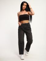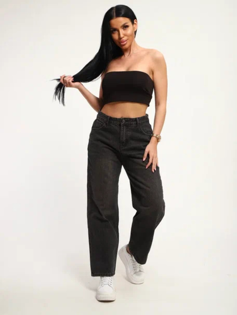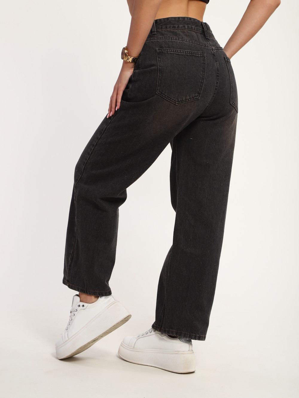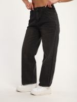 Стильные женские джинсы свободного кроя. Модель с высокой посадкой и классической застежкой на пуговицу и молнию обеспечивает комфортную посадку и подчеркивает талию. Прямой, слегка расширяющийся книзу силуэт идеально подойдет для создания современных городских образов. Джинсы легко комбинируются с кедами, футболками и топами для повседневного стиля.