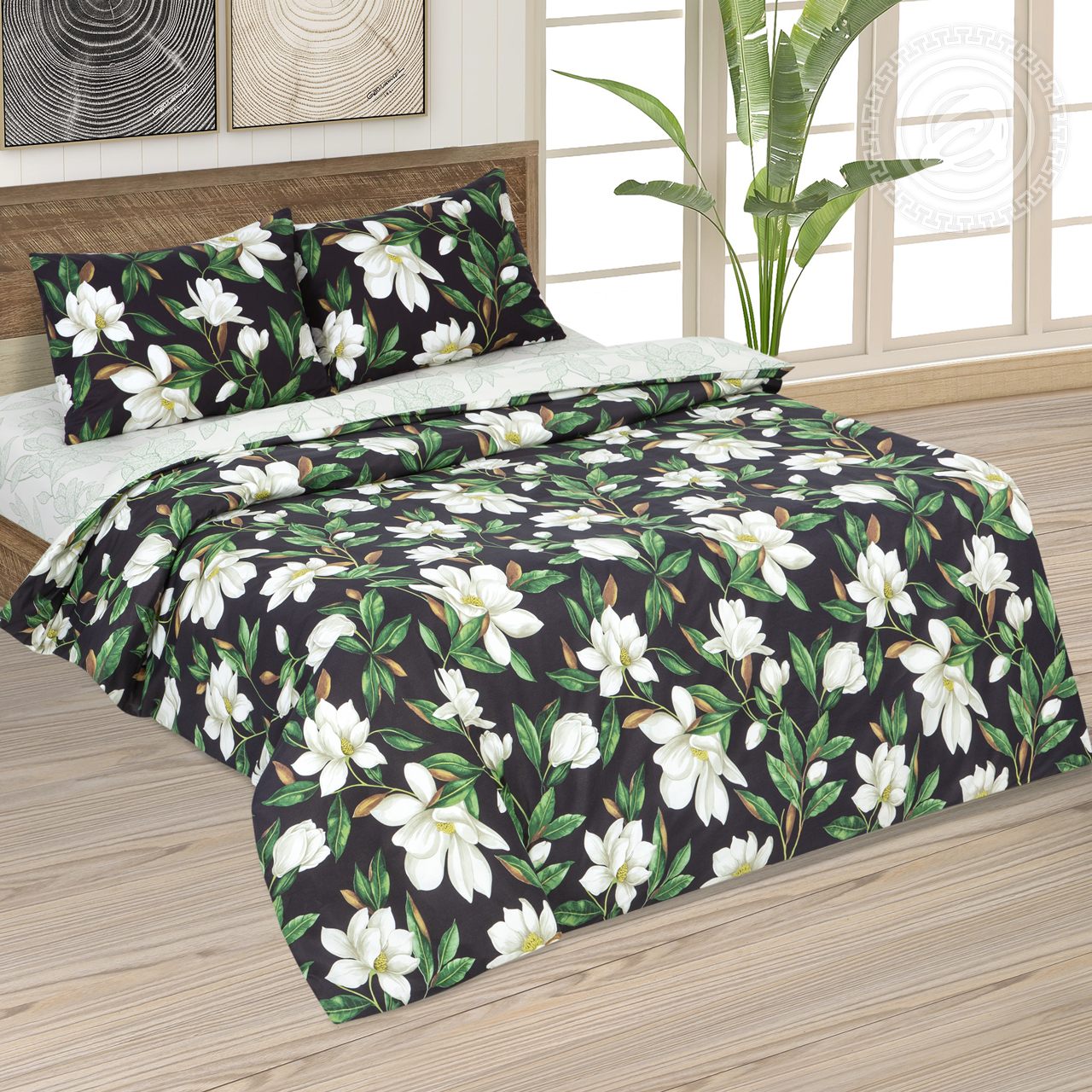 Модный принт с белыми магнолиями украсил постельное белье «Фелиция». Белоснежные лепестки красивых цветов контрастируют с фоном в темной палитре. Композиция представляет собой гармоничное сплетение трендовых оттенков и элегантного рисунка, символизирующего женскую красоту и изящество. Комплект из поплина «Фелиция» станет изысканным украшением спальни и подарит ощущение весны.