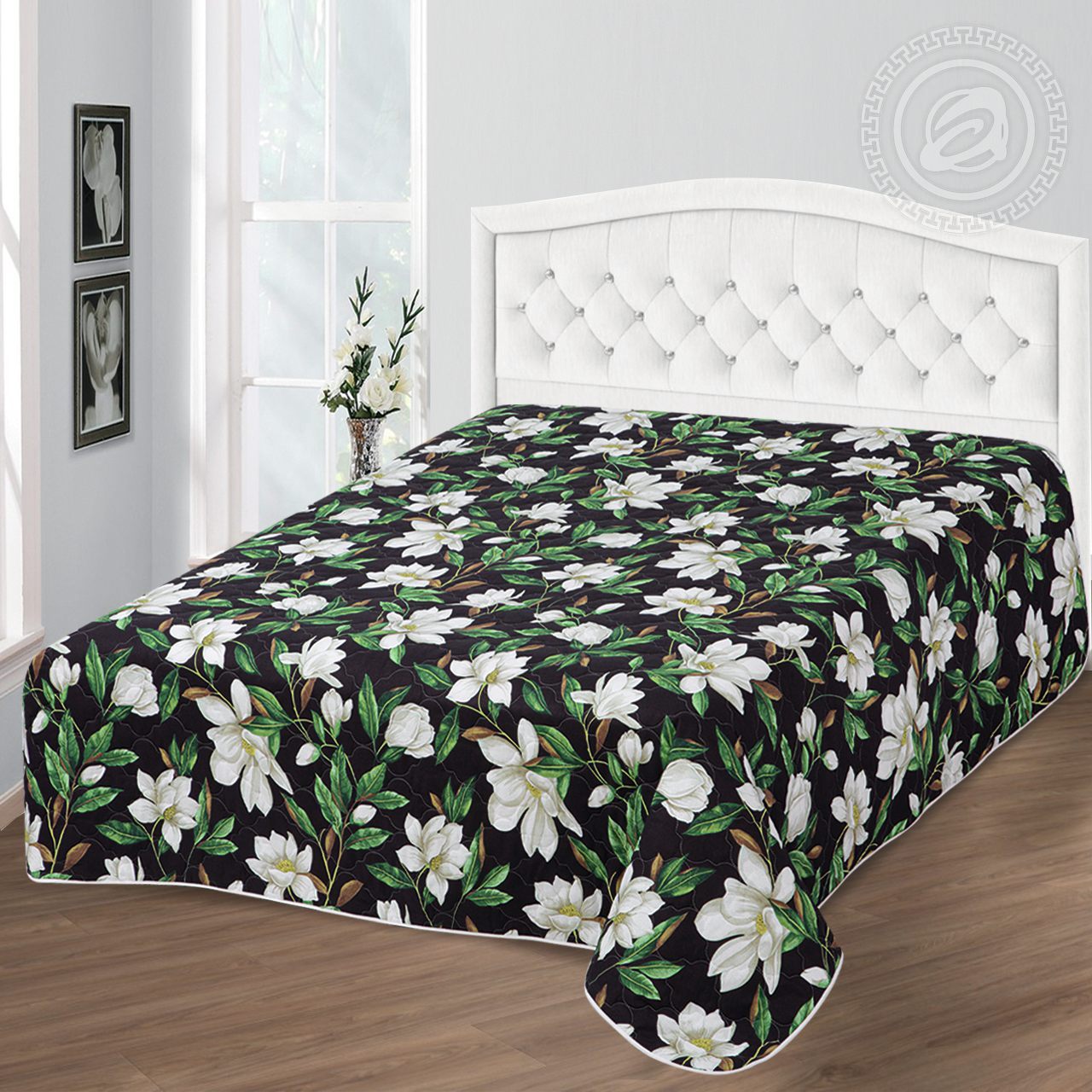 Модный принт с белыми магнолиями украсил покрывало «Фелиция». Белоснежные лепестки красивых цветов контрастируют с фоном в темной палитре. Композиция представляет собой гармоничное сплетение трендовых оттенков и элегантного рисунка, символизирующего женскую красоту и изящество. Покрывало из поплина «Фелиция» станет изысканным украшением спальни и подарит ощущение весны. Изделия выполнены из 100% - хлопка не вызывают аллергии и безопасны для здоровья человека. Наполнитель из полиэфирного волокна отличается замечательными воздухопроницаемыми и теплоизоляционными свойствами.