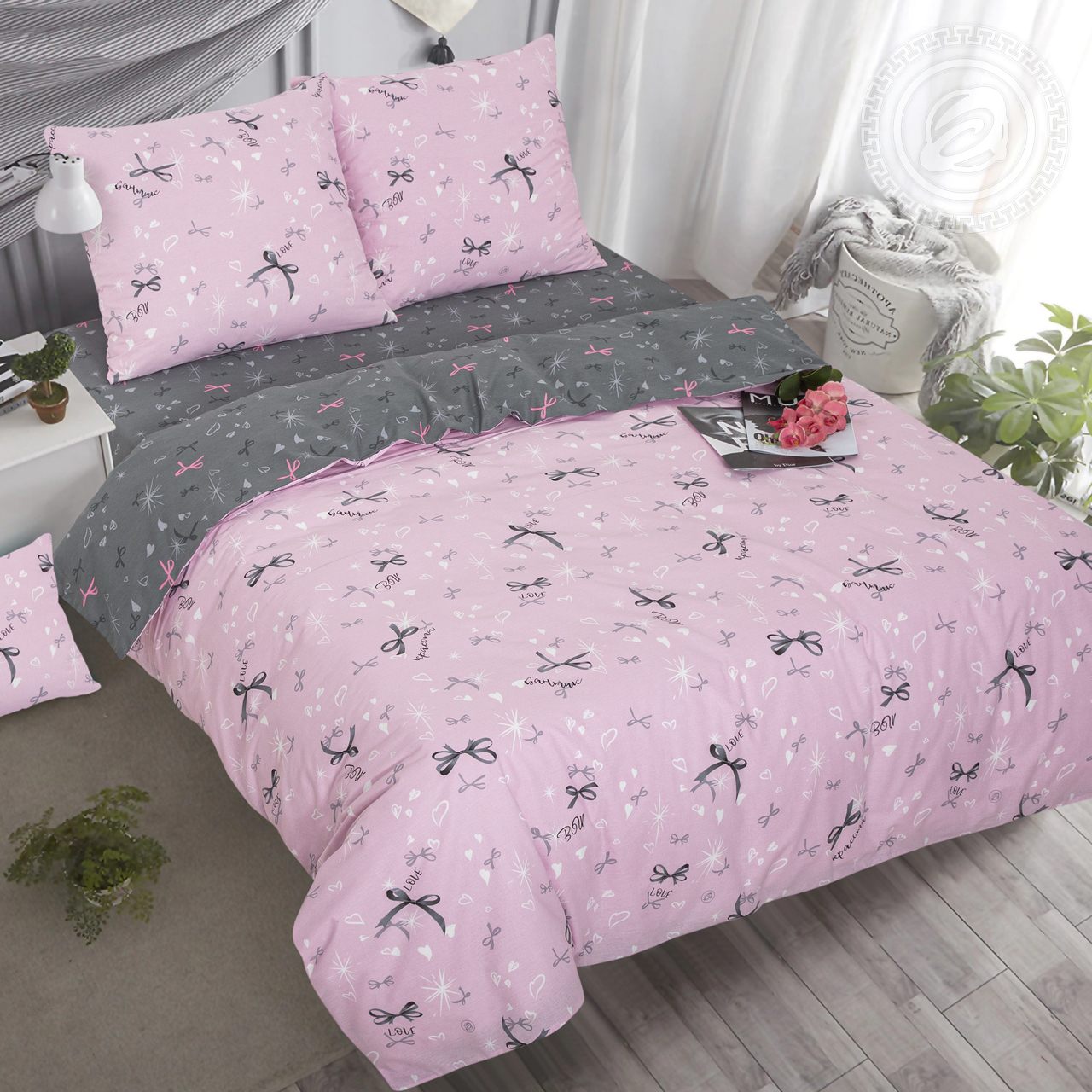 «Флирт» – постельное белье с бантиками с атмосферой романтики и нежности. Удачное сочетание розово-серых оттенков, лаконичный и очаровательный узор, – всё это делает комплект из поплина хитом коллекции. Если Вы в поисках подарка на 14 февраля или 8 марта, то «Флирт» – отличный выбор.