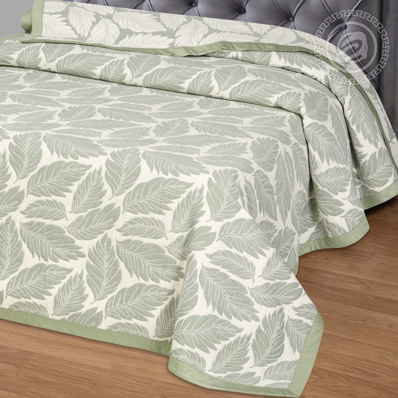 Мягкое и прочное покрывало хлопковое из жаккарда – символ тепла и уюта. Оно отличается не только функциональностью, но и стильным дизайном. Спокойные оттенки и рисунки в виде зеленых листьев дарят приятные мысли, помогают расслабиться после трудного дня и погрузиться в мир сна. Этот цвет гармонично впишется в любой интерьер.