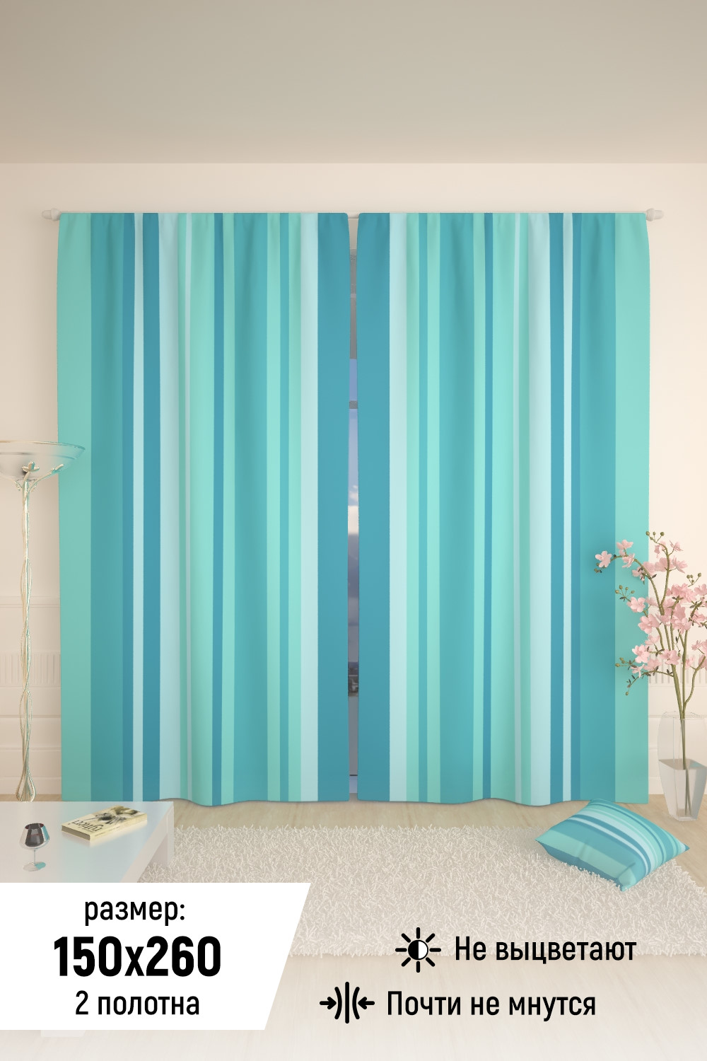 Фотошторы - оригинальное и относительно недорогое решение, позволяющее украсить и обновить ваш дом, придать ему неповторимый стиль, красоту и подарить его обитателям не только комфорт и уют, но и стать надёжной защитой от палящего солнца летом, холода зимой и шума города. Шторы изготовлены из высококачественного и долговечного материала габардин плотностью 180 гр./м кв. Отличаются высокой износостойкостью, при этом очень воздушны и легко драпируются. Принт и материалы экологичны и гипоаллергенны. Краска со временем не выгорает и не тускнеет даже после множественных стирок. Светопропускаемость 60%. Крепление - шторная лента (под крючки). Вес комплекта 1,7 кг. Высота 260 см, ширина двух полотен 300 см. (погрешность 3 см). Тон изображения может незначительно отличаться от представленной на сайте фотографии. Тыльная сторона портьеры не имеет изображения. Стирать при 30 градусах в режиме "Деликатная стирка". Гладить не выше 120 градусов.