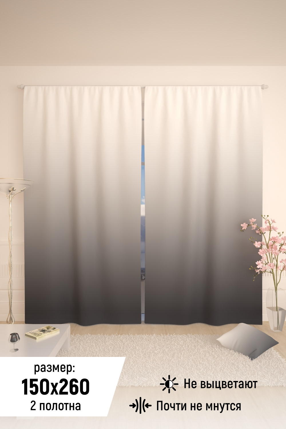 Фотошторы - оригинальное и относительно недорогое решение, позволяющее украсить и обновить ваш дом, придать ему неповторимый стиль, красоту и подарить его обитателям не только комфорт и уют, но и стать надёжной защитой от палящего солнца летом, холода зимой и шума города. Шторы изготовлены из высококачественного и долговечного материала габардин плотностью 180 гр./м кв. Отличаются высокой износостойкостью, при этом очень воздушны и легко драпируются. Принт и материалы экологичны и гипоаллергенны. Краска со временем не выгорает и не тускнеет даже после множественных стирок. Светопропускаемость 60%. Крепление - шторная лента (под крючки). Вес комплекта 1,7 кг. Высота 260 см, ширина двух полотен 300 см. (погрешность 3 см). Тон изображения может незначительно отличаться от представленной на сайте фотографии. Тыльная сторона портьеры не имеет изображения. Стирать при 30 градусах в режиме "Деликатная стирка". Гладить не выше 120 градусов.