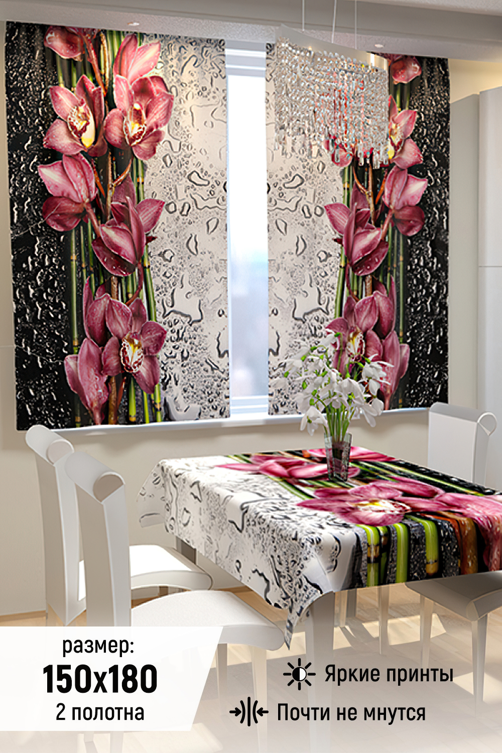 Фотошторы для кухни из габардина смогут украсить любой интерьер, добавить яркости, свежести и поднять настроение. Это идеальный вариант для вашей кухни. В комплекте идут 2 полотна, каждое шириной 150 см. и высотой 180 см. Уход деликатная стирка при температуре 30 градусов С.
