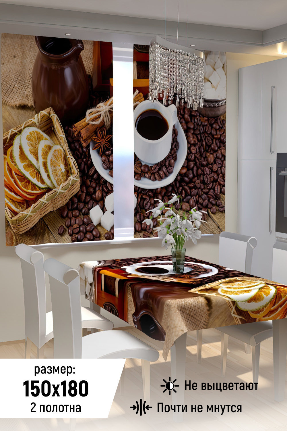 Фотошторы для кухни из габардина смогут украсить любой интерьер, добавить яркости, свежести и поднять настроение. Это идеальный вариант для вашей кухни. В комплекте идут 2 полотна, каждое шириной 150 см. и высотой 180 см. Уход деликатная стирка при температуре 30 градусов С.