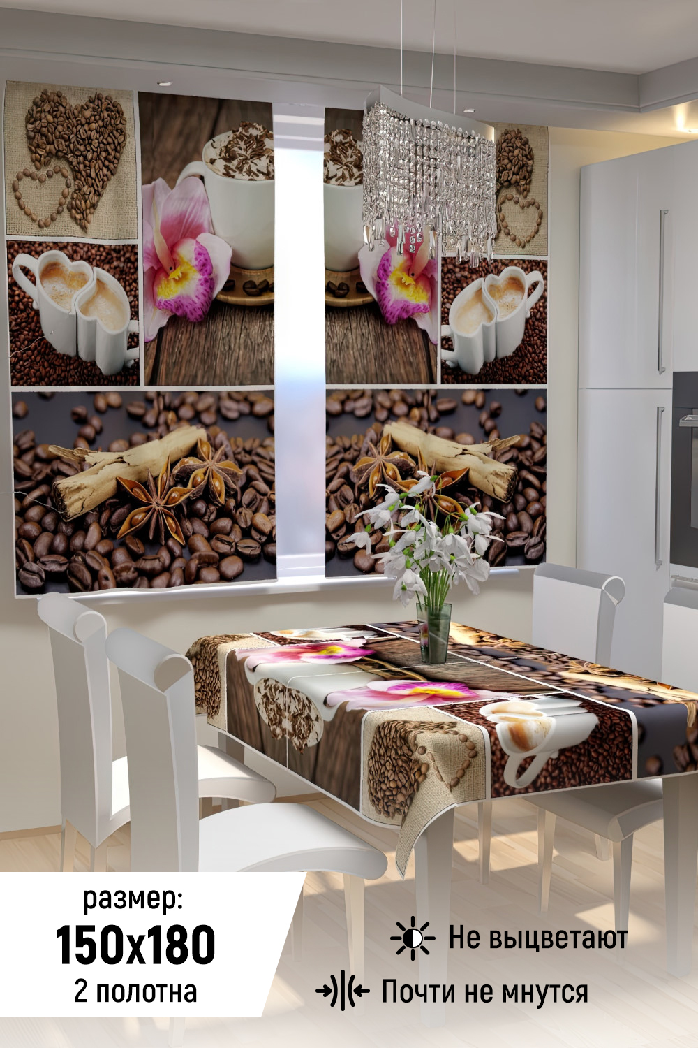 Фотошторы для кухни из габардина смогут украсить любой интерьер, добавить яркости, свежести и поднять настроение. Это идеальный вариант для вашей кухни. В комплекте идут 2 полотна, каждое шириной 150 см. и высотой 180 см. Уход деликатная стирка при температуре 30 градусов С.