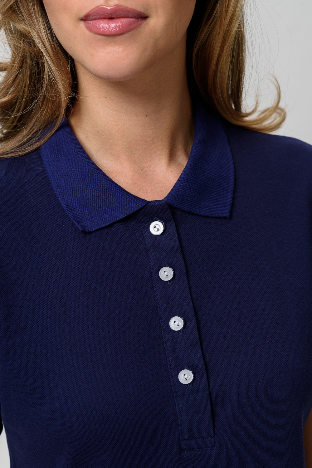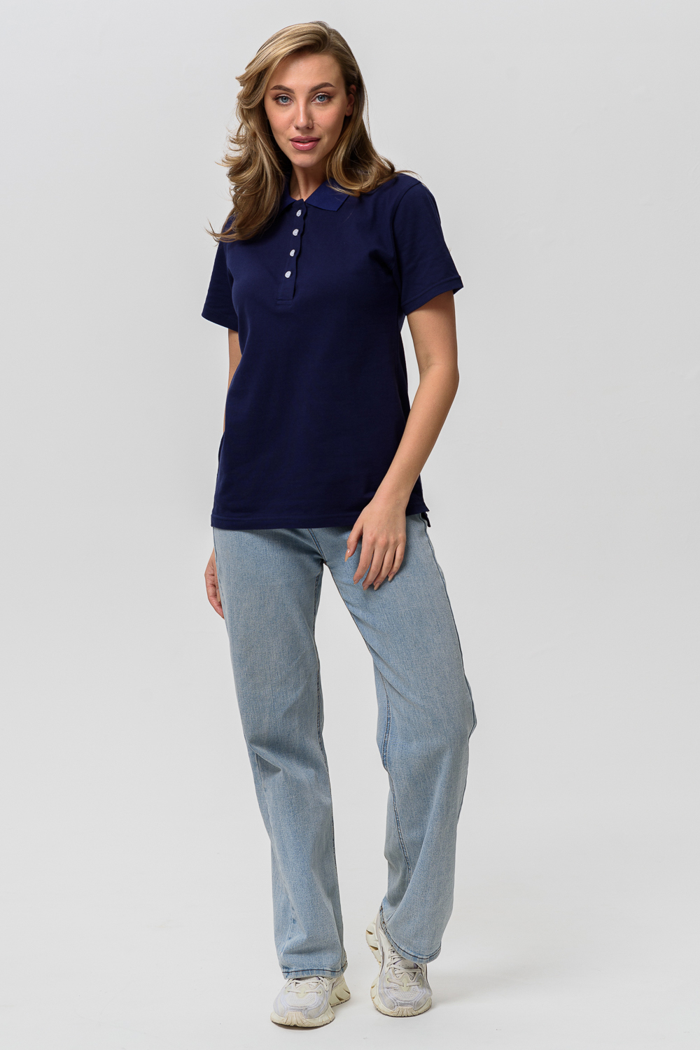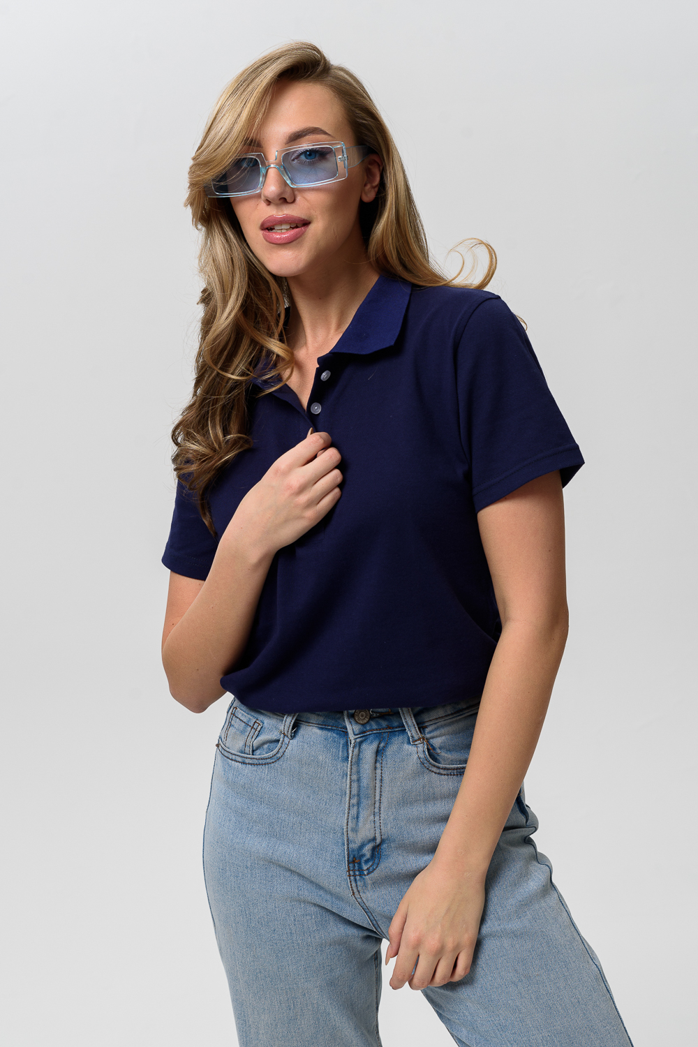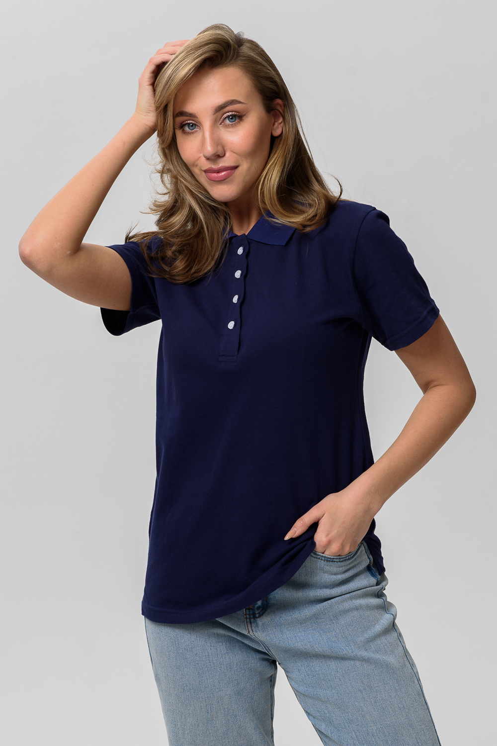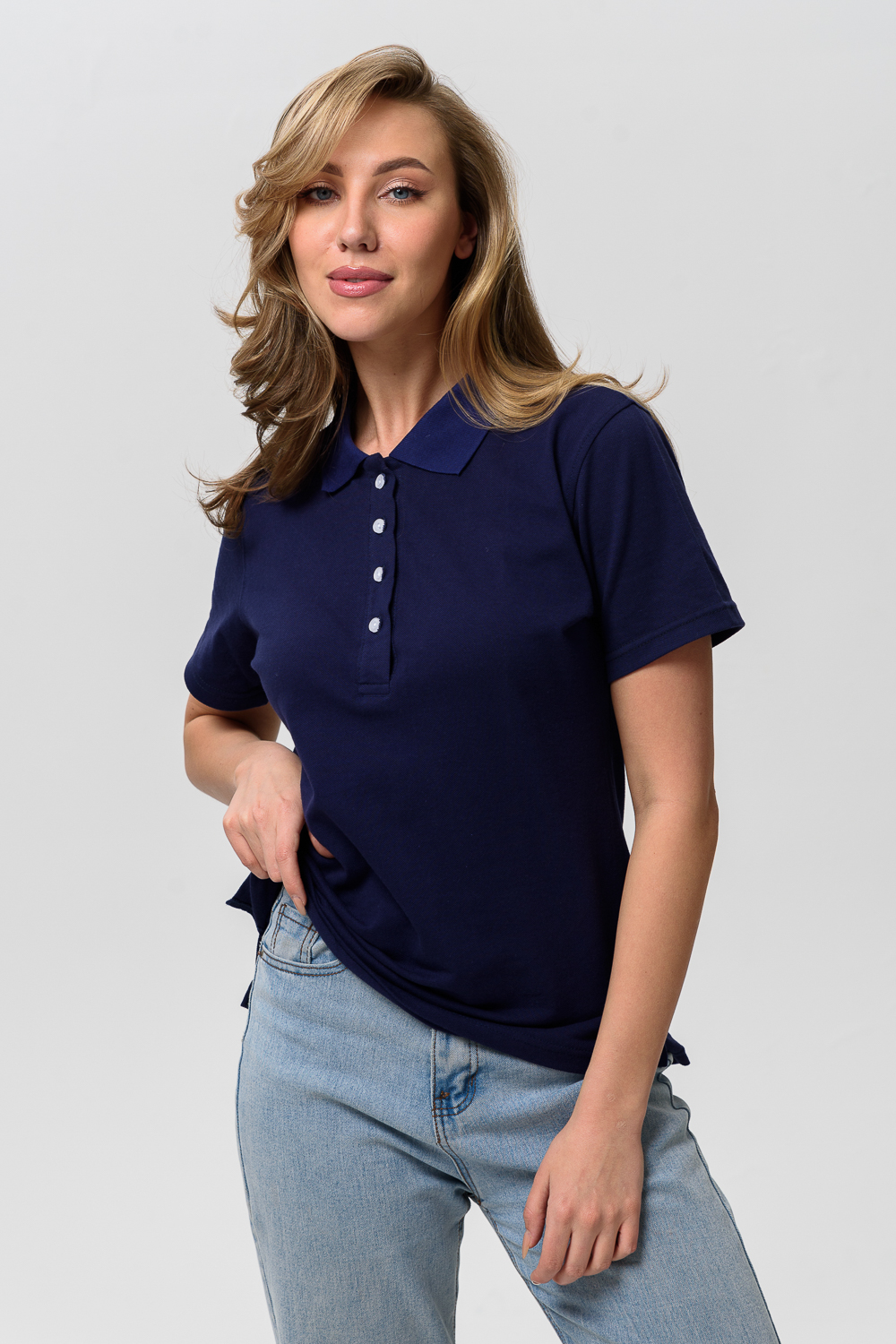 Элегантная футболка-поло из пике. Небольшой отложной воротничок на пуговицах. Поло могут прийти без полоски на воротнике.